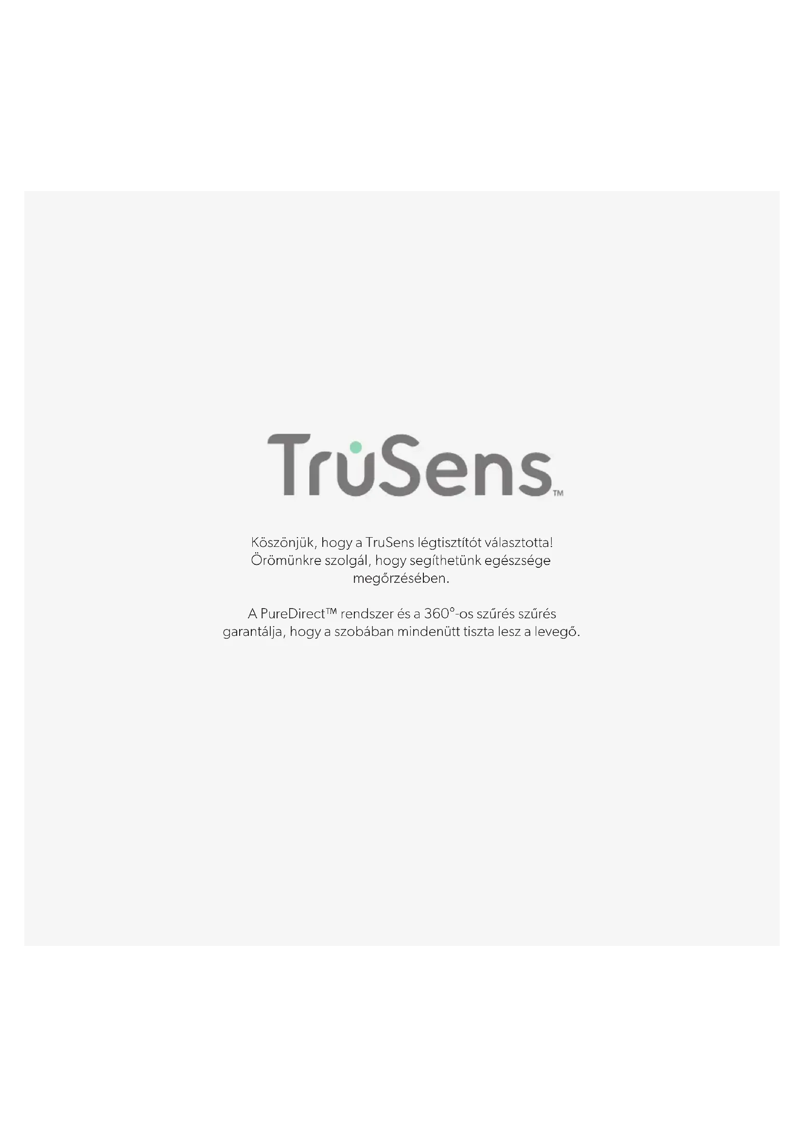 Köszönjük, hogy a TruSens™ készüléket választotta. Fontosnak tartjuk, hogy ügyfeleinknek olyan termékeket tervezzünk, amelyek maximálisan megfelelnek életmódjuk igényeinek. Forduljon hozzánk bizalommal, ha bármilyen kérdése vagy visszajelzése lenne! Hogy regisztrálja és aktiválja a jótállást, lépjen ide www.leitz.com/register Látogassa meg webhelyünket: www.leitz.com/trusens Írjon e-mailt: hungarymarketing@acco.com Hívjon telefonon: +36 1 424 6600Witamy w strefie czystego powietrza z TruSens. Dziękujemy za umożliwienie nam udziału w dążeniu do zdrowia i dobrego samopoczucia. Oddychaj w domu czyściejszym powietrzem dzięki technologii PureDirect™ i filtracji 360°, które zapewniają czyściejsze powietrze w całym pomieszczeniu.225