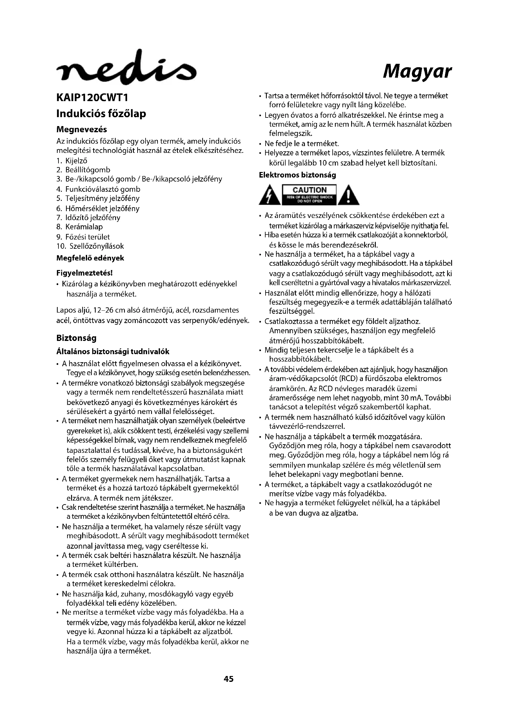 KAIP120CWT1 - Tűzhely NEDIS - Ingyenes használati útmutató