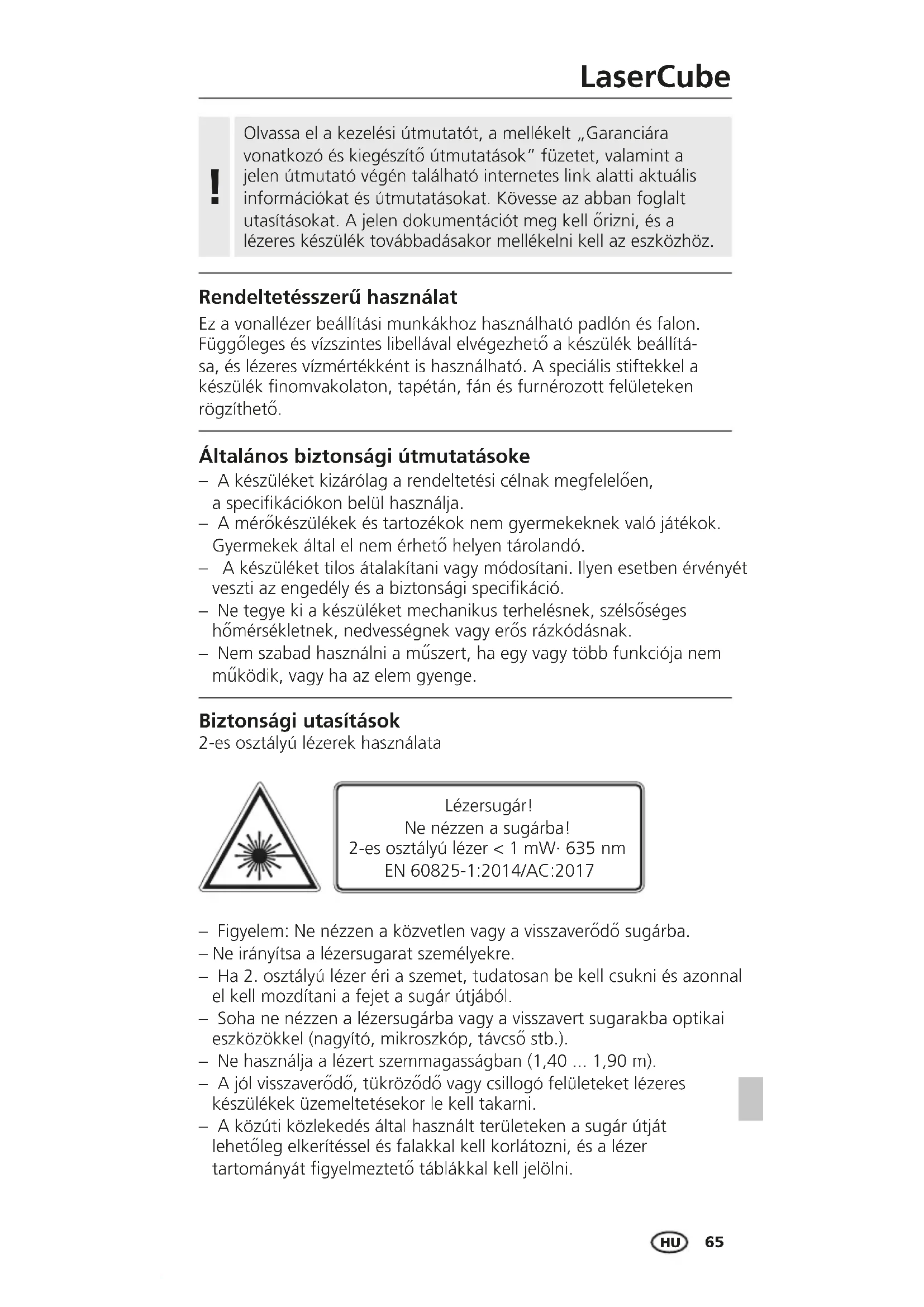 HASZNÁLATI ÚTMUTATÓ LaserCube Laserliner