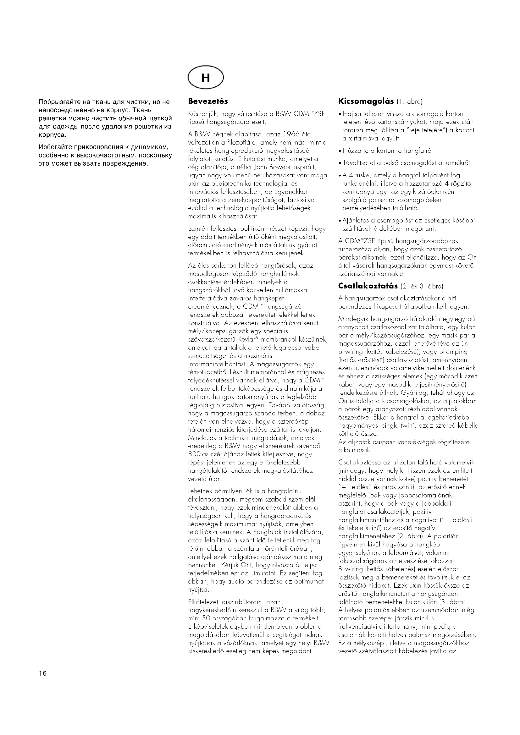 HASZNÁLATI ÚTMUTATÓ CDM 7SE BOWERS & WILKINS