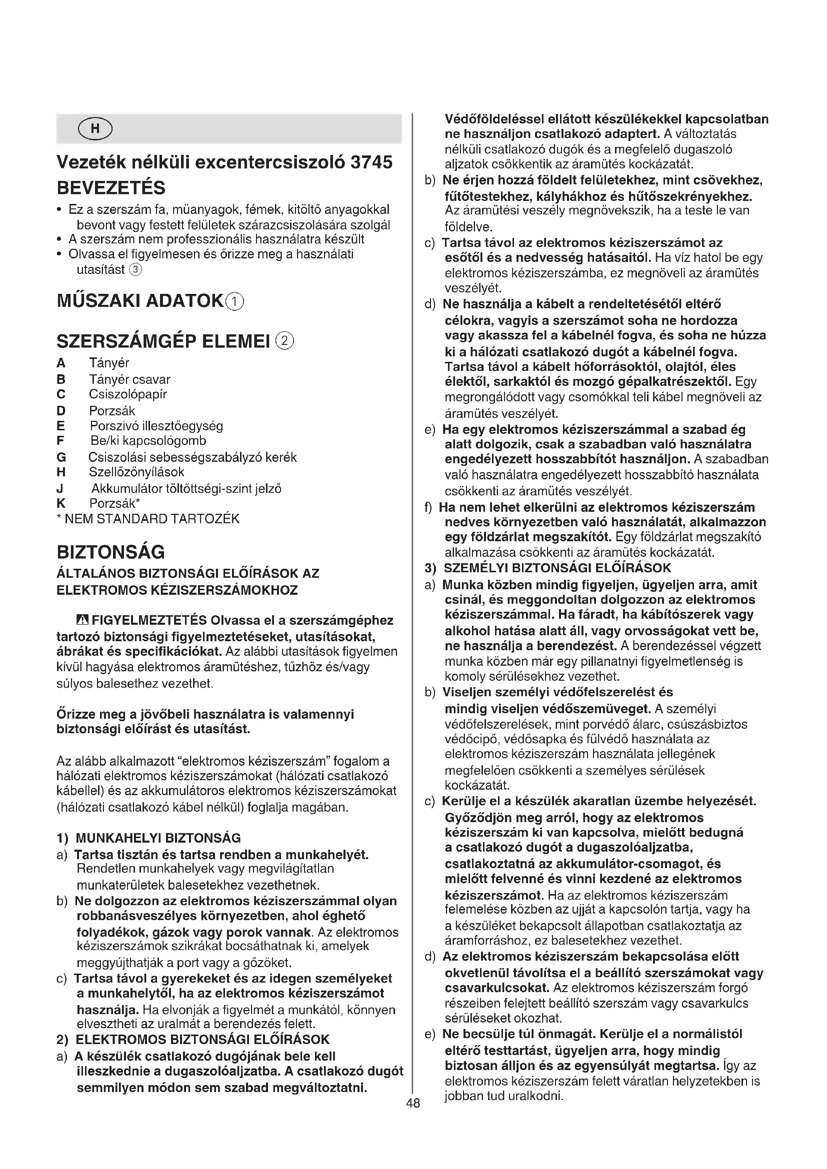Vezeték nélküli excentercsiszoló 3745 BEVEZETÉS