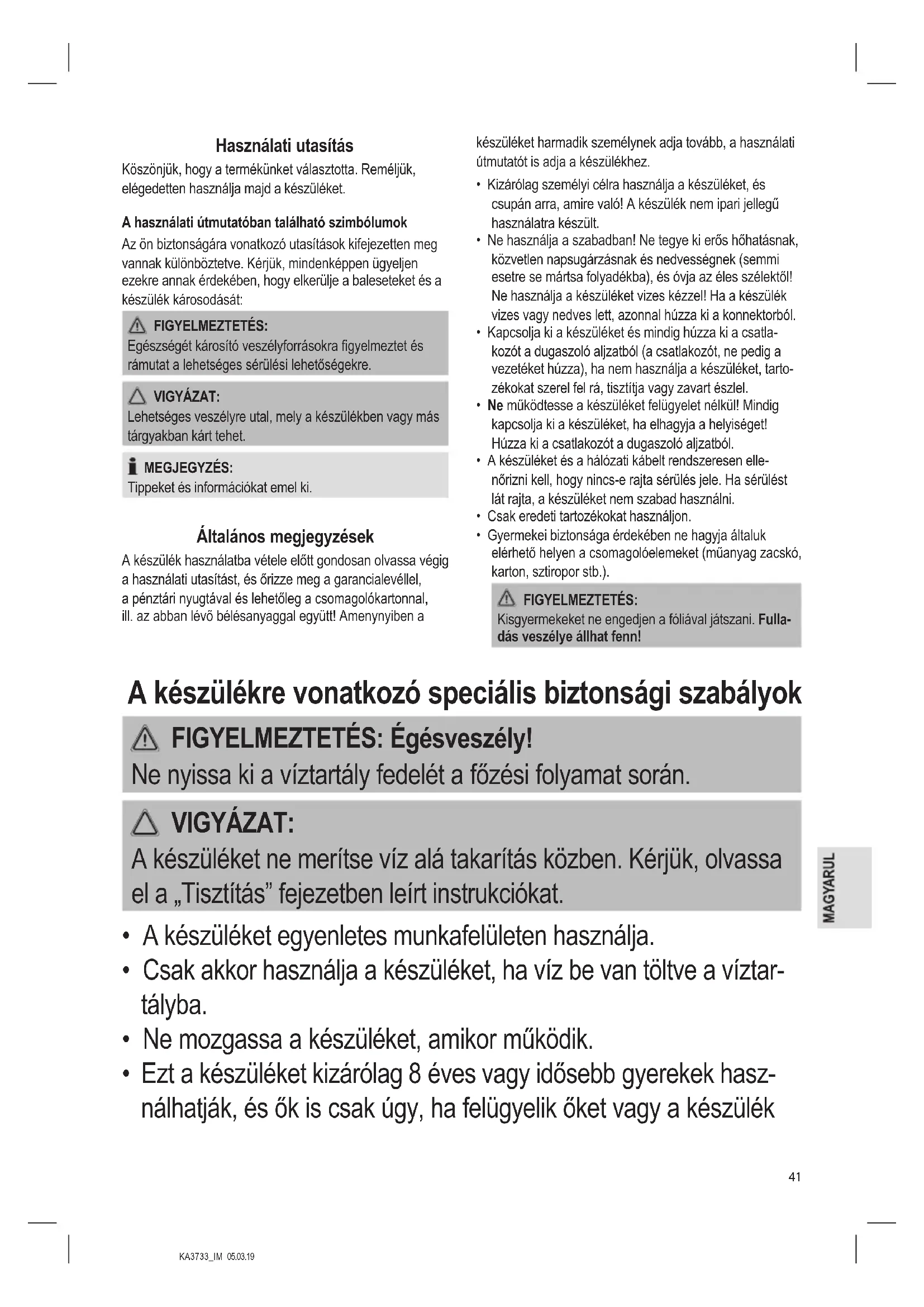 - Ezt a készüléket kizárólag 8 éves vagy idősebb gyerekek hasz- nálhatják, és ők is csak úgy, ha felügyelik őket vagy a készülékKA3733_IM 05.03.19