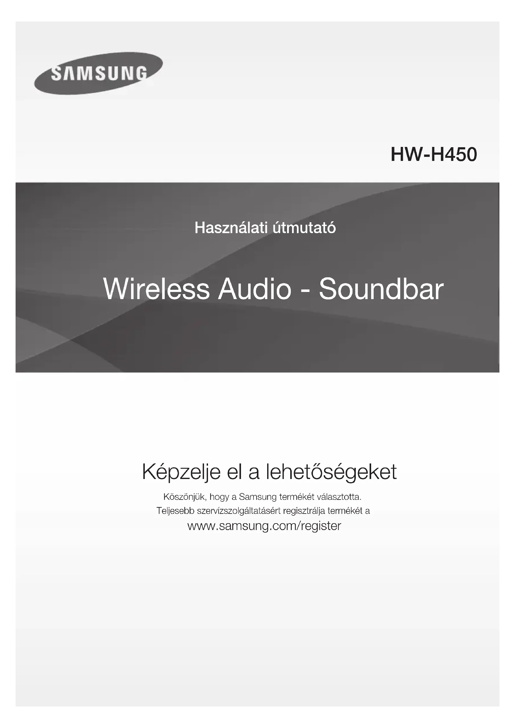 24 Műszaki adatok ● Az útmutatóban látható ábrák és illusztrációk csak referenciaként szolgálnak, és eltérhetnek a termék tényleges megjelenésétől. ● Adminisztrációs költséget számíthatunk fel, ha (a) mérnöknek kell ellátogatnia otthonába és a termék nem hibásodott meg (a felhasználói kézikönyv elolvasásának elmulasztása esetén). (b) a készüléket javítóműhelybe hozza, de nem hibásodott meg (a felhasználói kézikönyv elolvasásának elmulasztása esetén). ● A látogatás vagy a javítási munka megkezdése előtt tájékoztatjuk az adminisztrációs díj mértékéről. HW-H450_EUR_HUN_141027.indd 5HW-H450_EUR_HUN_141027.indd 5 2014-10-27 4:02:392014-10-27 4:02:396