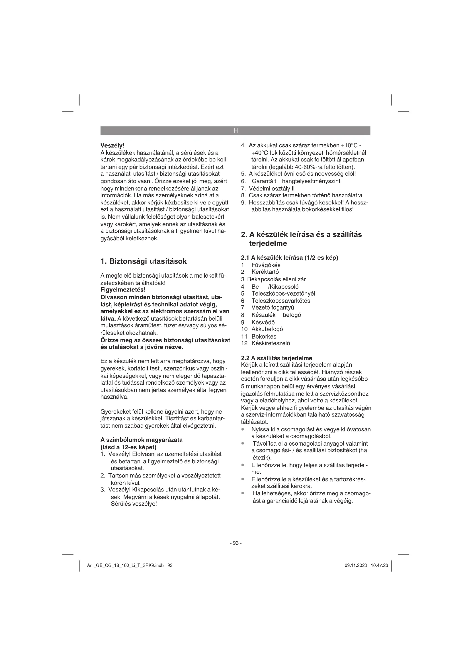 Használjon a fűvágó és a bokorvágó ollóhoz egy szállításvédőt. Anl_GE_CG_18_100_Li_T_SPK9.indb 97Anl_GE_CG_18_100_Li_T_SPK9.indb 97 09.11.2020 10:47:2309.11.2020 10:47:23H
