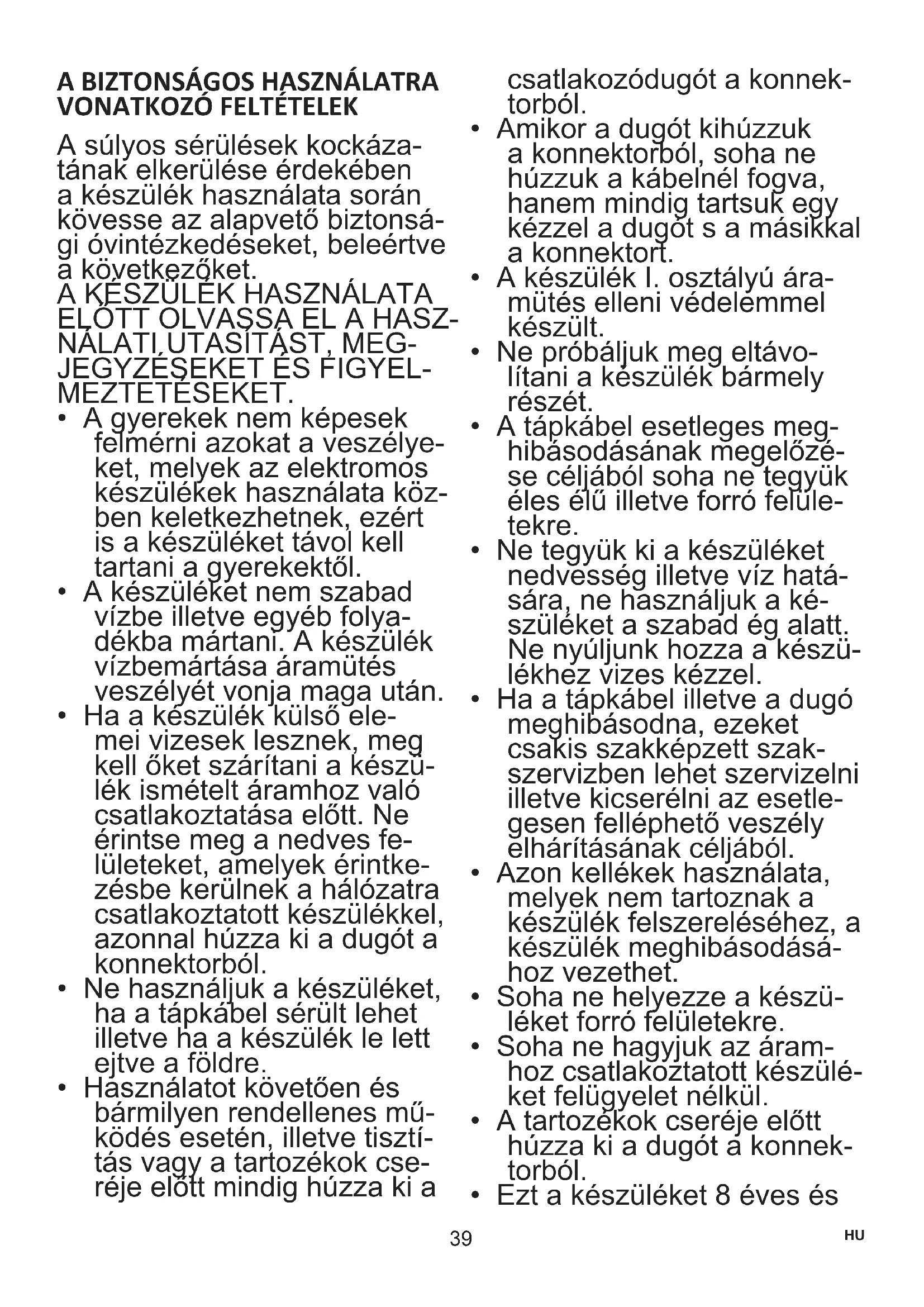 A súlyos sérülések kockáza- tának elkerülése érdekében a készülék használata során kövesse az alapvető biztonsá- gi óvintézkedéseket, beleértve a következőket. A KÉSZÜLÉK HASZNÁLATA