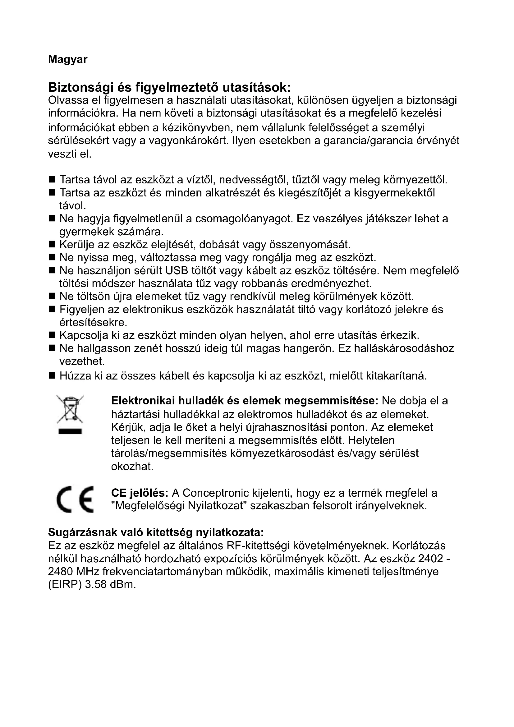 CE jelölés: A Conceptronic kijelenti, hogy ez a termék megfelel a "Megfelelőségi Nyilatkozat" szakaszban felsorolt irányelveknek.
