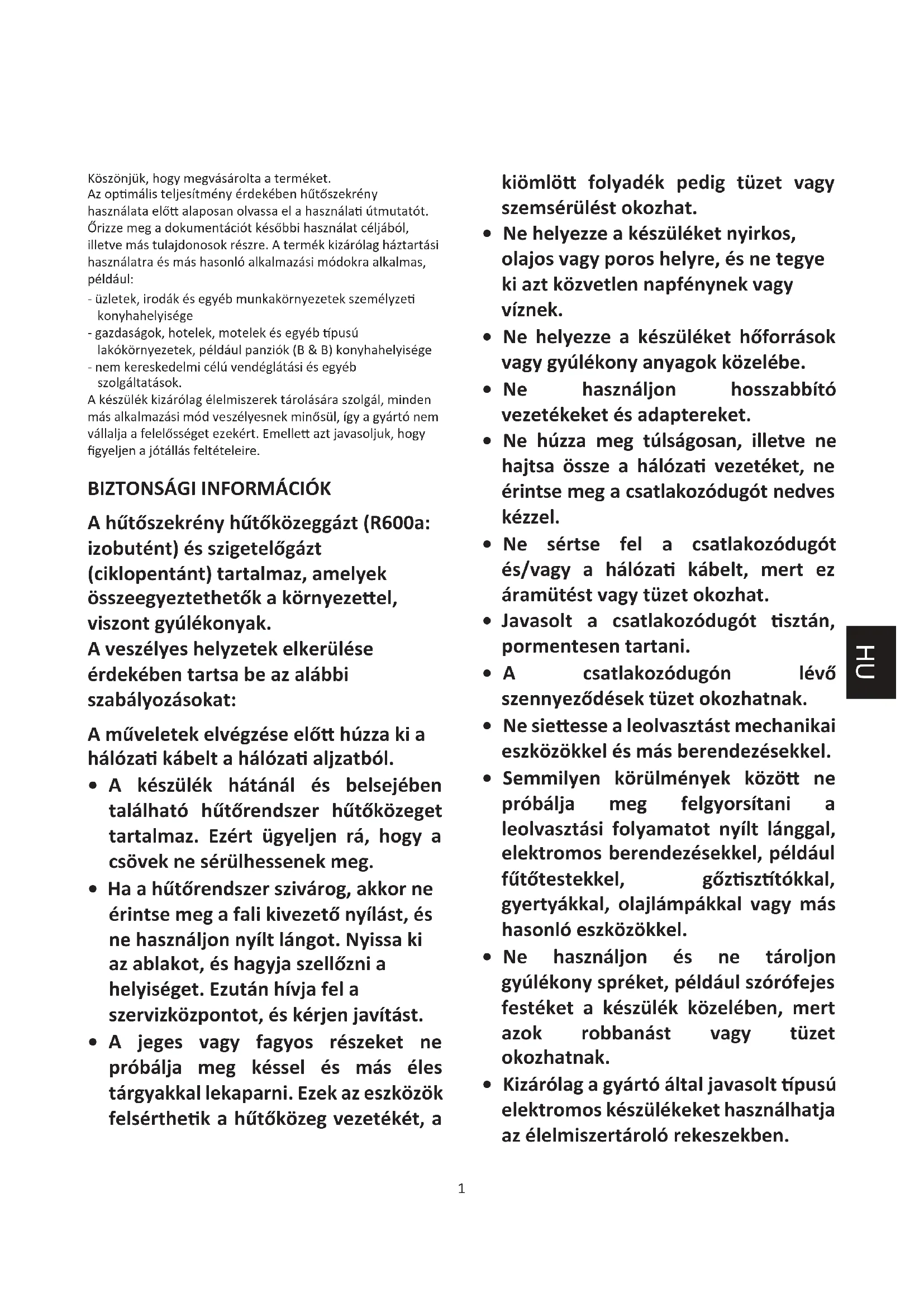 GARANTIE1 Köszönjük, hogy megvásárolta a terméket. Az opƟmális teljesítmény érdekében Śƾƚƅszekrény használata elƅƩalaposan olvassa el a használaƟ útmutatót. Sƌŝzze meg a dokumentációt késƅbbi használat céljából, illetve más tulajdonosok részre. A termék kizárólag háztartási használatra és más hasonló alkalmazási módokra alkalmas, például: - üzletek, irodák és egyéb munkakörnyezetek személyzeƟ konyhahelyisége - gazdaságok, hotelek, motelek és egyéb ơpusú lakókörnyezetek, például panziók (B & B) konyhahelyisége - nem kereskedelmi célú vendéglátási és egyéb szolgáltatások. A készülék kizárólag élelmiszerek tárolására szolgál, minden más alkalmazási mód veszélyesnek minƅsül, így a gyártó nem vállalja a felelƅsséget ezekért. EmelleƩazt javasoljuk, hogy ĮŐyeljen a jótállás feltételeire.
