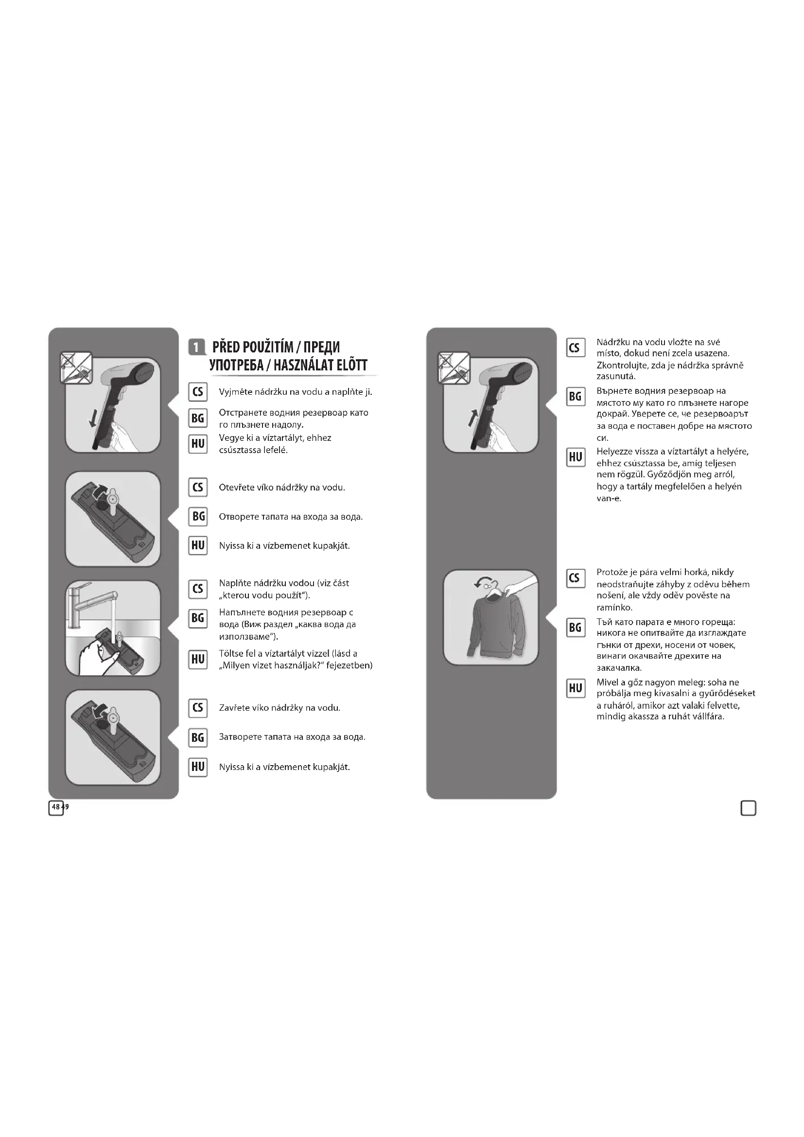 HASZNÁLAT OFF Vypněte spotřebič. Изключете уреда. Kapcsolja ki a készüléket. Spotřebič odpojte ze sítě. Извадете щепсела на уреда. Húzza ki a készülék dugóját a konnektorból.