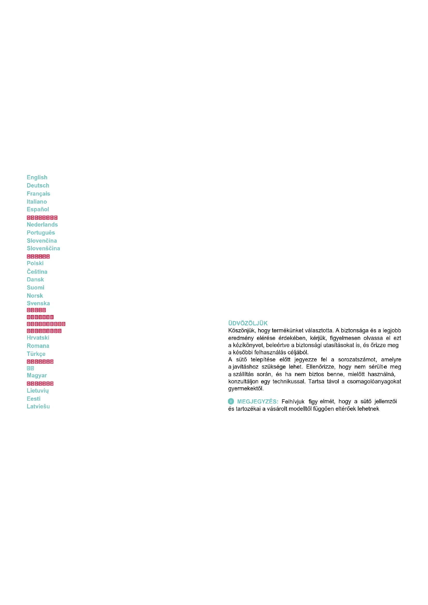 MEGJEGYZÉS: Felhívjuk figy elmét, hogy a sütő jellemzői és tartozékai a vásárolt modelltől függően eltérőek lehetnekÖSSZEGZÉS