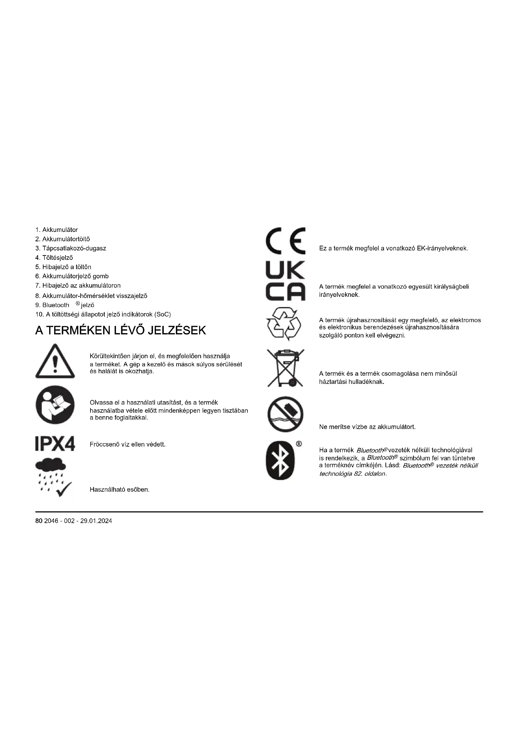 80 2046 - 002 - 29.01.2024Megjegyzés: A terméken szereplő többi jelölés/címke néhány piac specifikus vizsgáztatási követelményeire vonatkozik.
