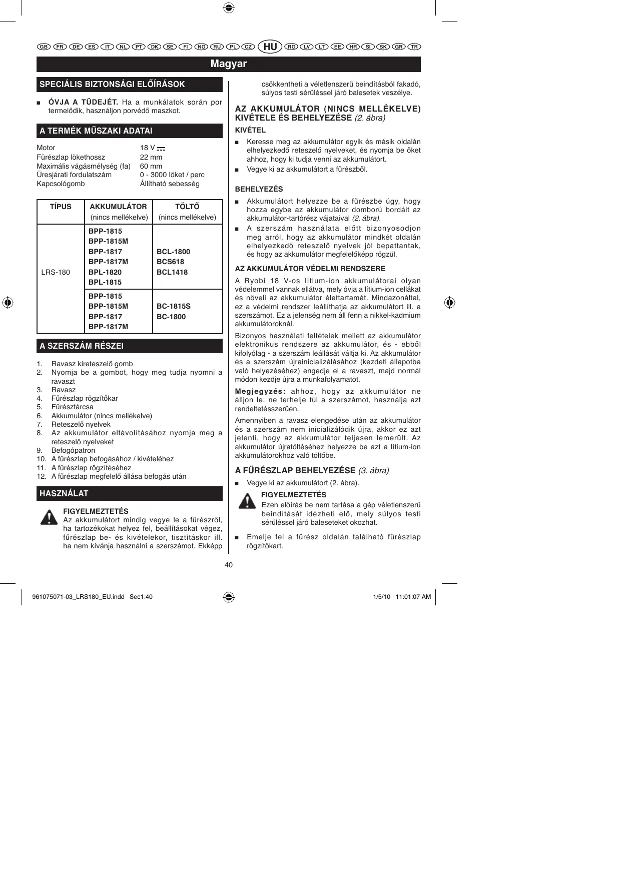 HASZNÁLATI ÚTMUTATÓ LRS180 RYOBI