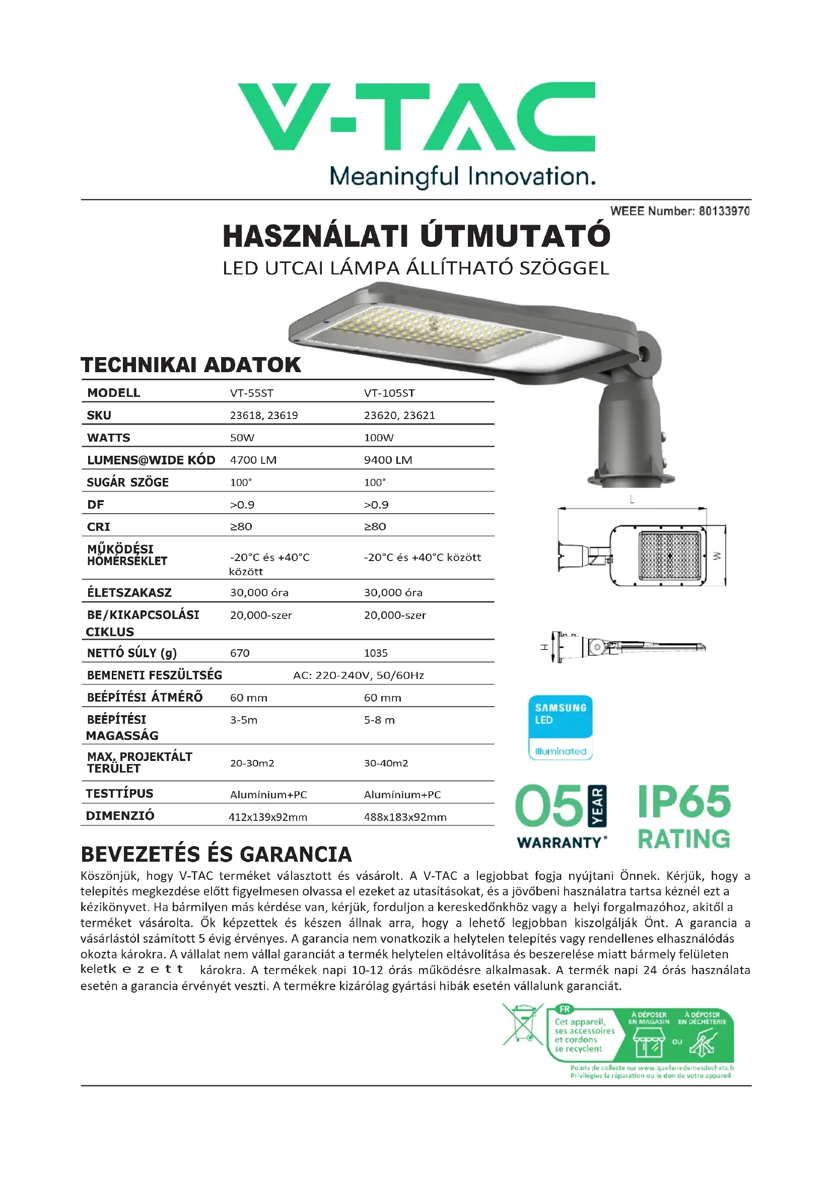 VT55ST - Világítás V-TAC - Ingyenes használati útmutató