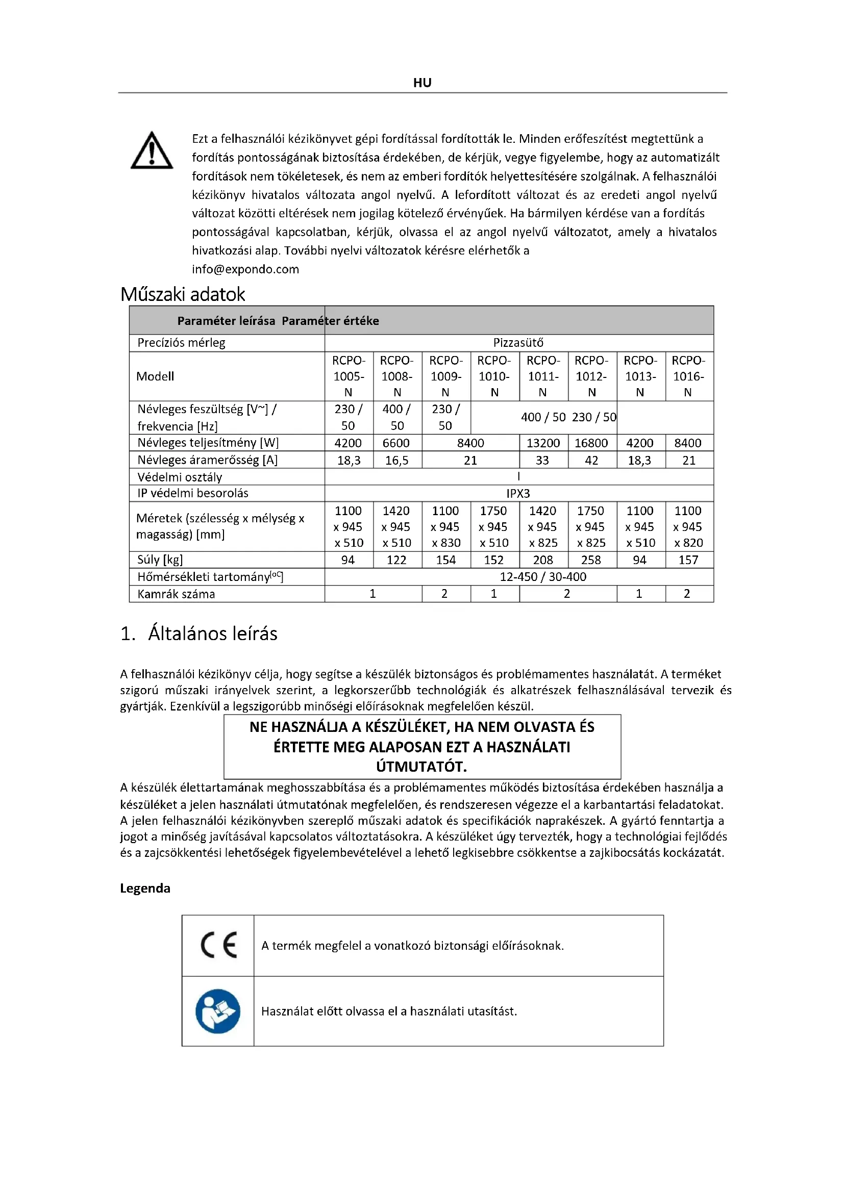 HASZNÁLATI ÚTMUTATÓ RCPO1005N Royal Catering