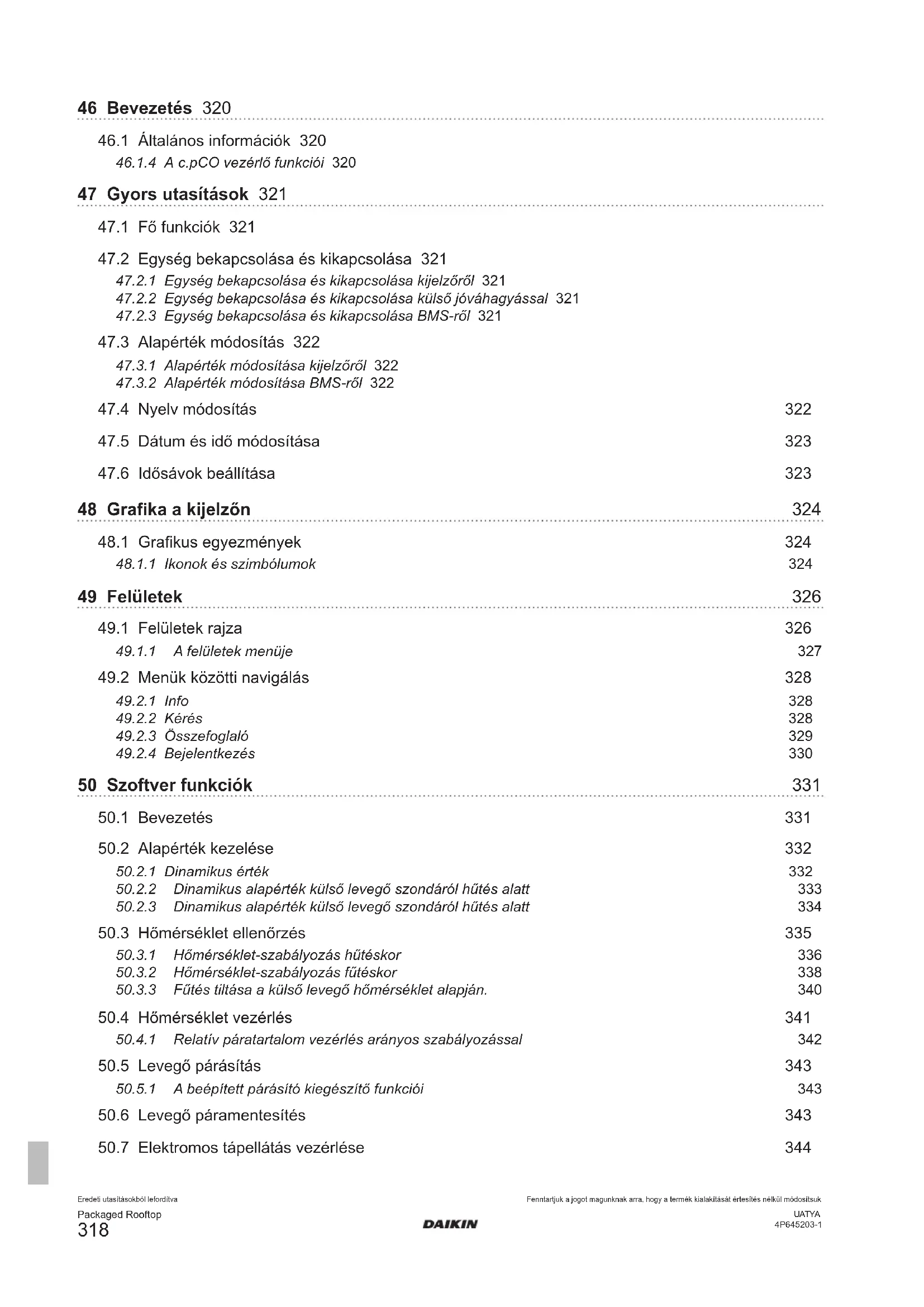 46.1.4 A c.pCO vezérlő funkciói 320
