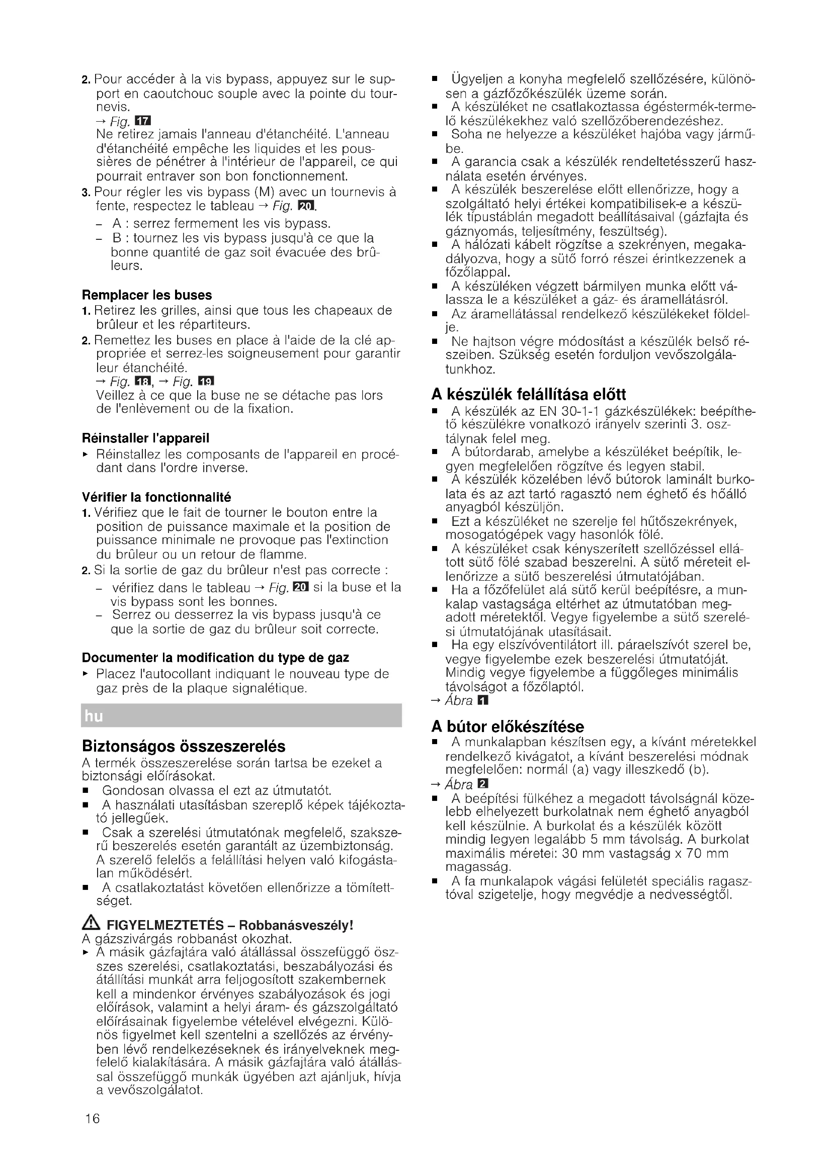 ¡ BN: barna ¡ BU: kék ¡ GN/YE: sárga és zöld A gázfajta átállítása Ha az ország előírásai engedélyezik, más gázfajták- hoz is beállíthatja a készüléket, amennyiben ezek fel vannak sorolva a típustáblán. A megfelelő alkatrészeket a készülékkel együtt szállí- tott tasakban találja, vagy megrendelheti a vevőszol- gálatnál. A táblázatban →Ábra