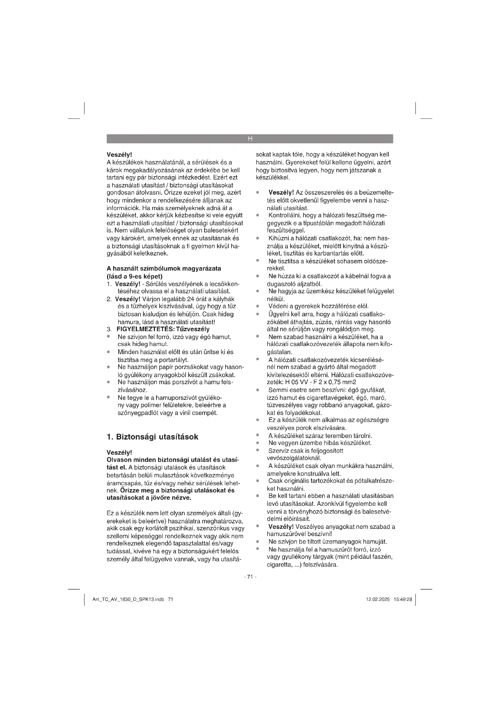 Ne használja fel a hamuszűrőt forró, izzó vagy gyullékony tárgyak (mint például faszén, cigaretta, ...) felszívására. Anl_TC_AV_1830_D_SPK13.indb 71Anl_TC_AV_1830_D_SPK13.indb 71 12.02.2025 15:49:2812.02.2025 15:49:28H