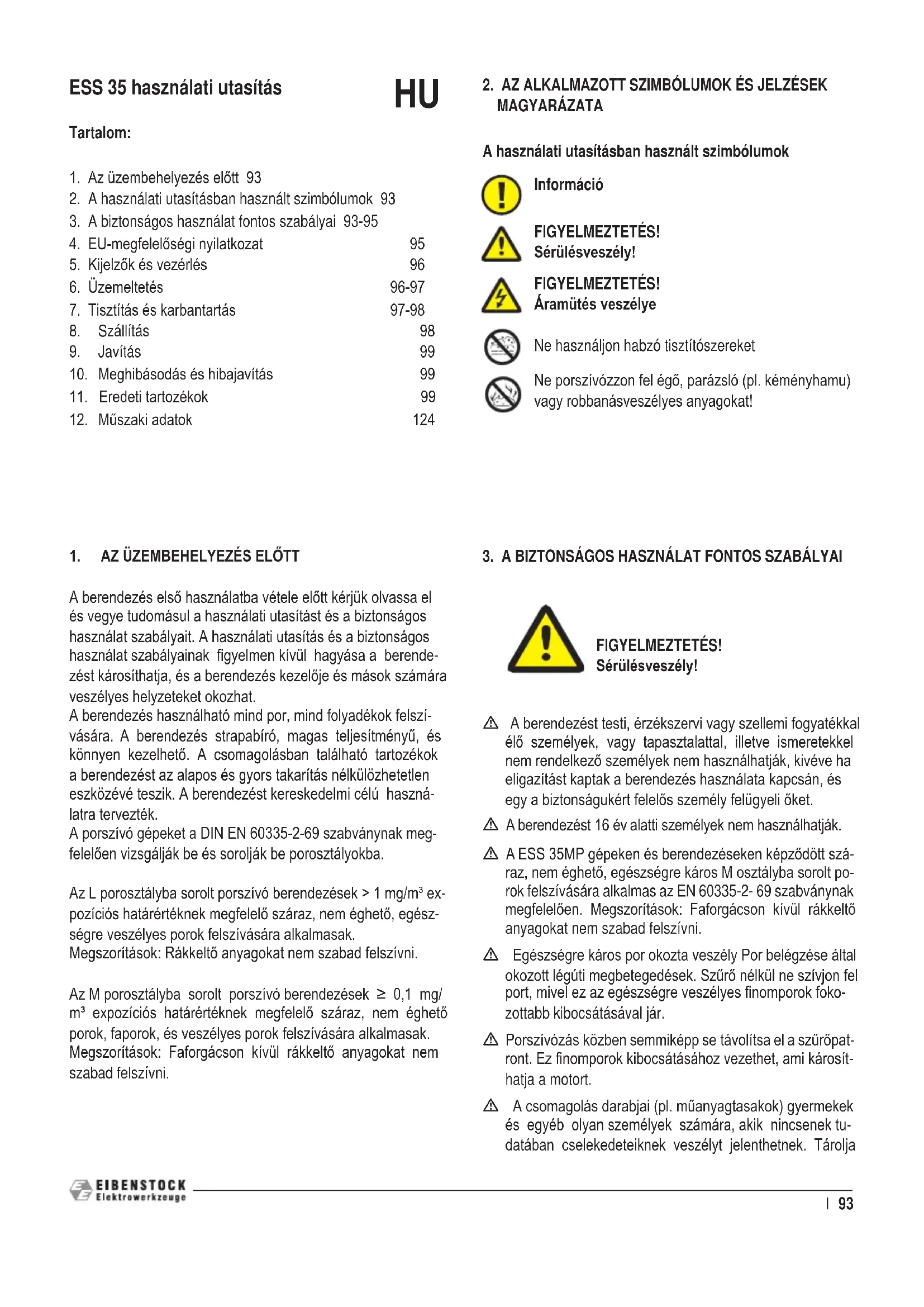 HASZNÁLATI ÚTMUTATÓ ESS 35LP Eibenstock
