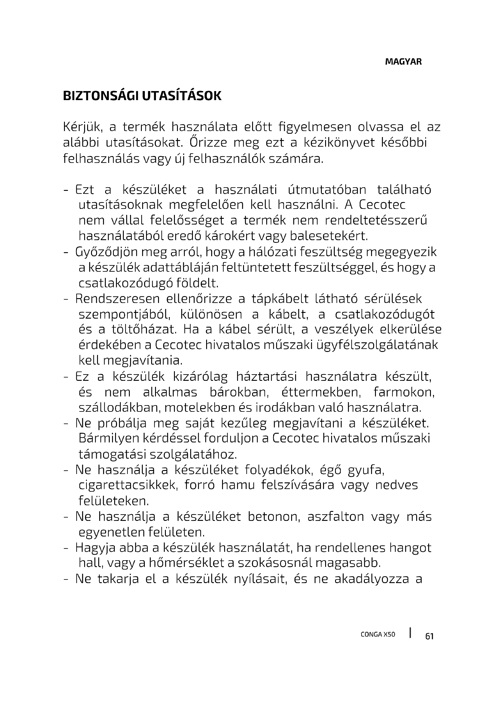 HASZNÁLATI ÚTMUTATÓ Conga X50 CECOTEC
