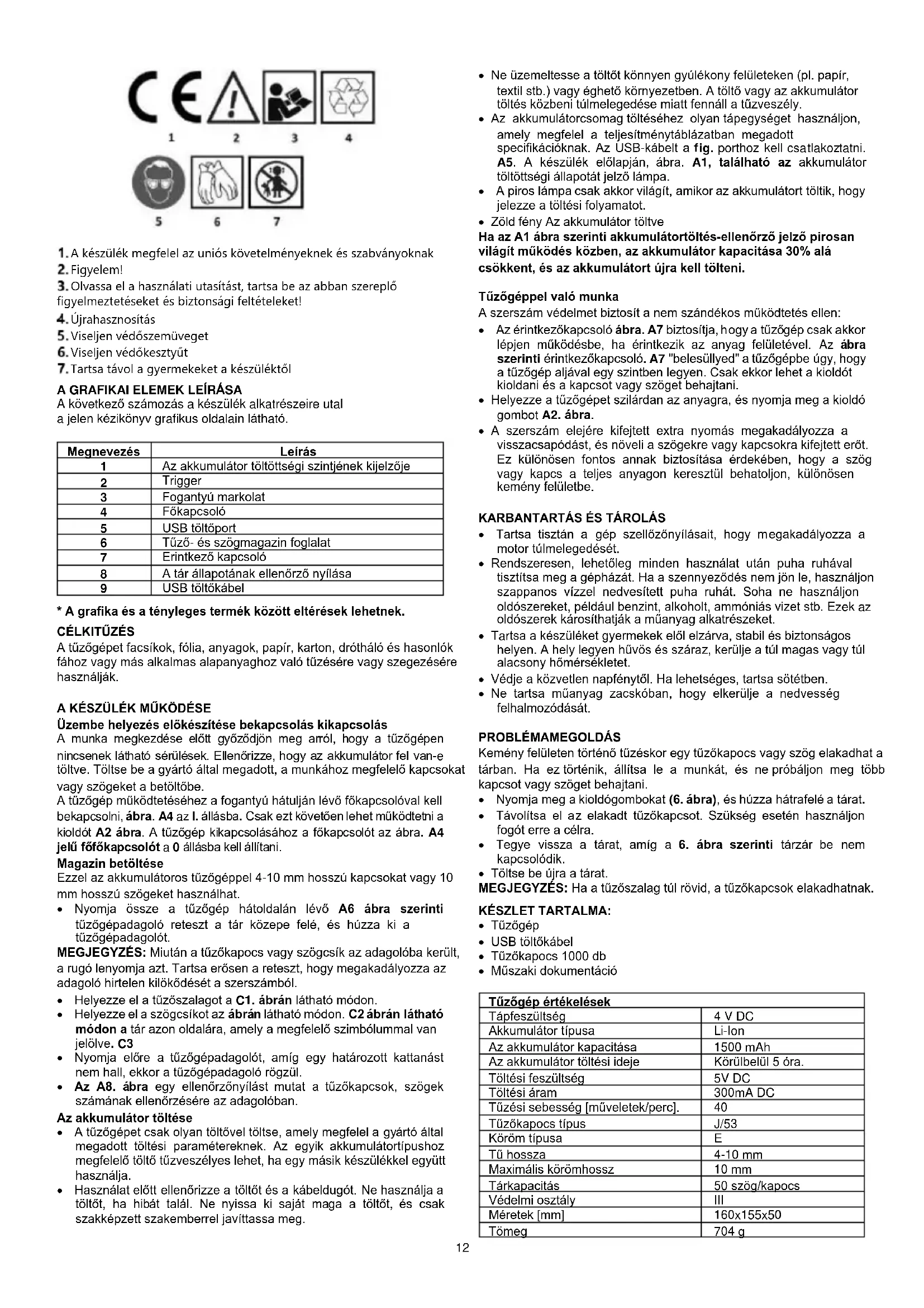 - Műszaki dokumentáció Tűzőgép értékelések Tápfeszültség 4 V DC Akkumulátor típusa Li-Ion Az akkumulátor kapacitása 1500 mAh Az akkumulátor töltési ideje Körülbelül 5 óra. Töltési feszültség 5V DC Töltési áram 300mA DC Tűzési sebesség [műveletek/perc].