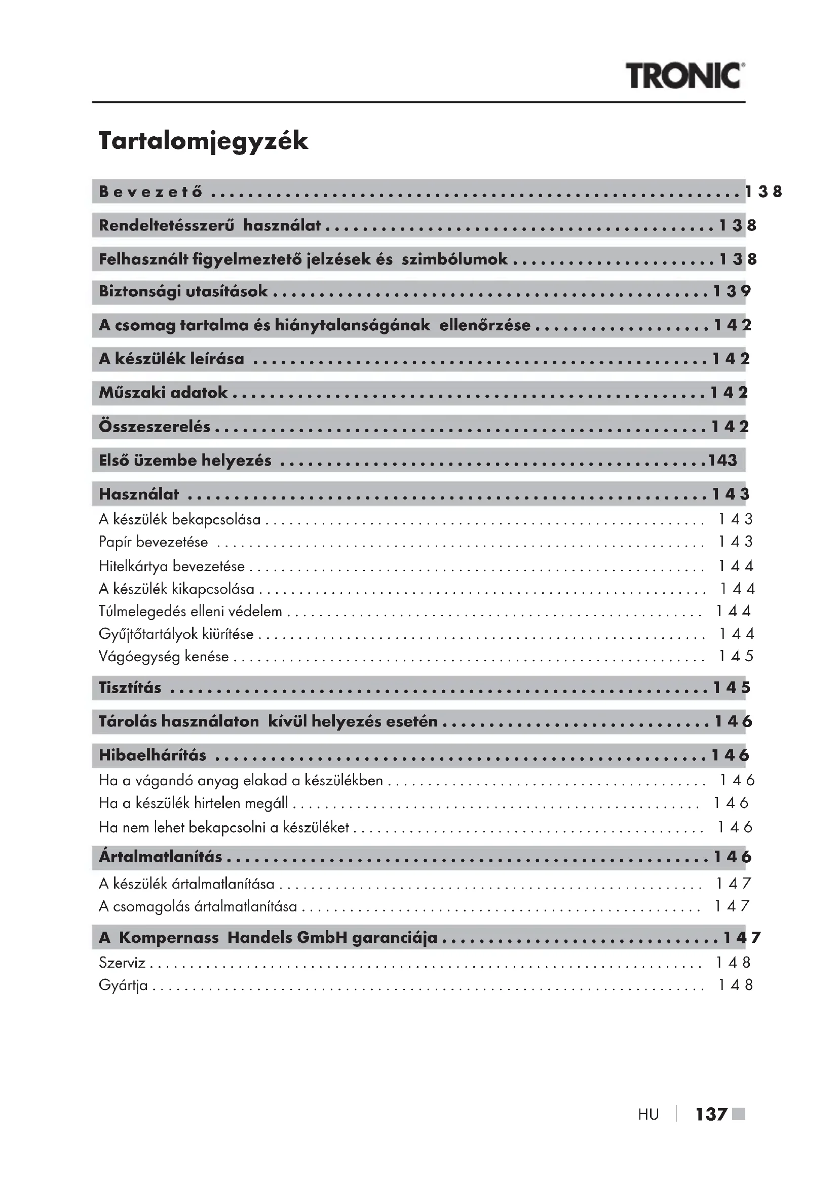- A készülék ártalmatlanítása p. 147