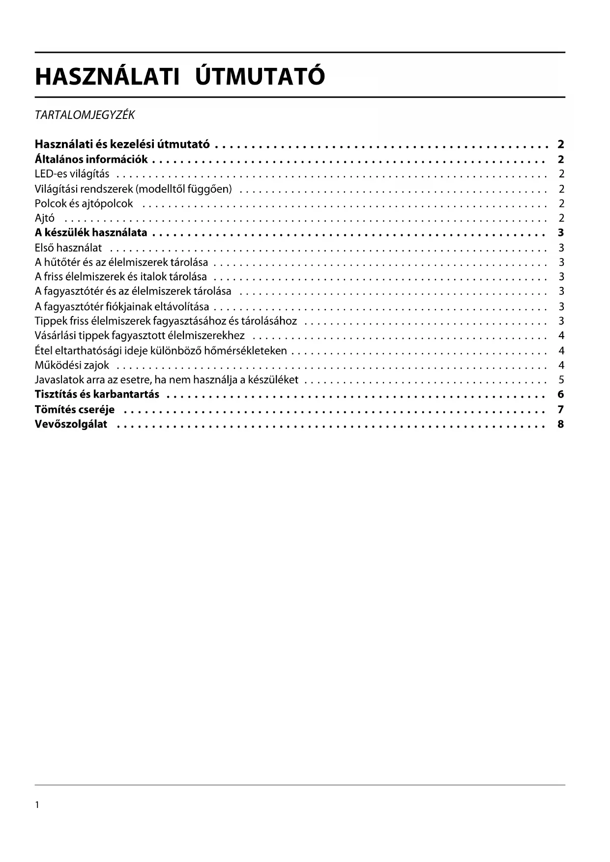 - Vevőszolgálat Használati és kezelési útmutató p. 8