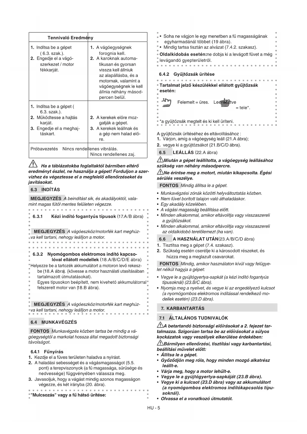 - Figyelem: a vágóelem a kikapcsolása után vagy a motor kikapcsolása után is tovább forog néhány másodpercig.