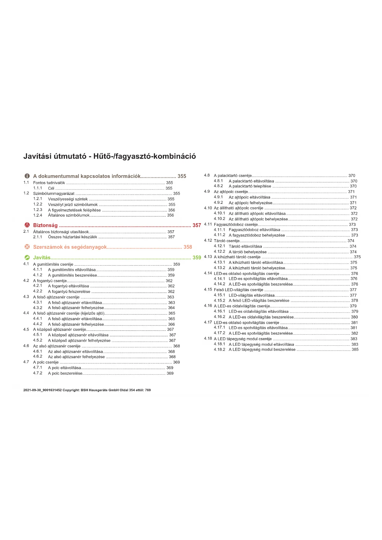 A LED tápegység modul beszerelése ................................................385 Javítási útmutató-Hűtő-/fagyasztó-kombináció 2021-09-30_9001631452 Copyright: BSH Hausgeräte GmbH Oldal354ettől:769A dokumentummal kapcsolatos információk