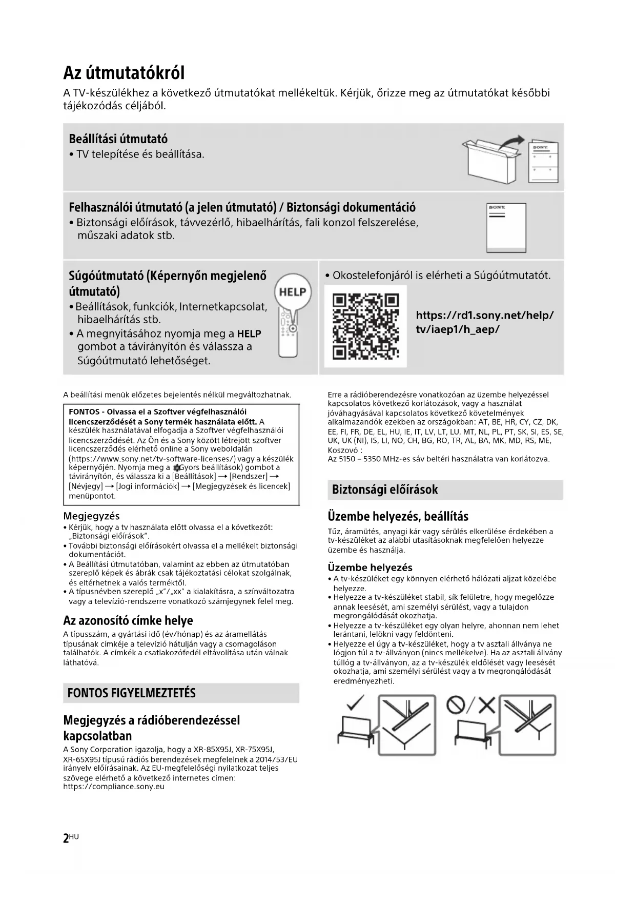 Töltse le az útmutatót a következőhöz Televízió PDF formátumban ingyenesen! Találja meg kézikönyvét Bravia XR65X95J - SONY és vegye vissza elektronikus eszközét a kezébe. Ezen az oldalon közzé van téve az eszköze használatához szükséges összes dokumentum. Bravia XR65X95J márka SONY.