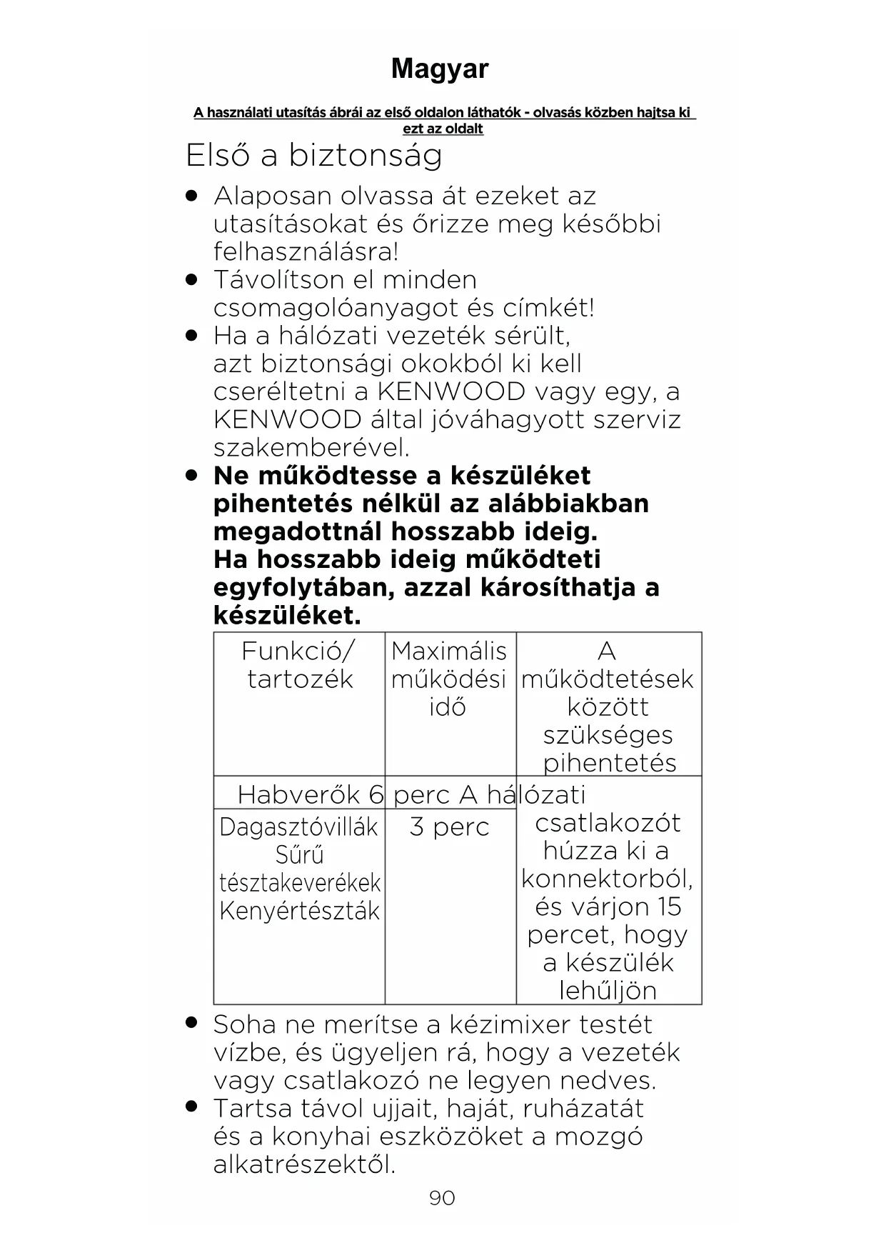 Tartsa távol ujjait, haját, ruházatát és a konyhai eszközöket a mozgó alkatrészektől. A használati utasítás ábrái az első oldalon láthatók - olvasás közben hajtsa ki ezt az oldalt Magyar91