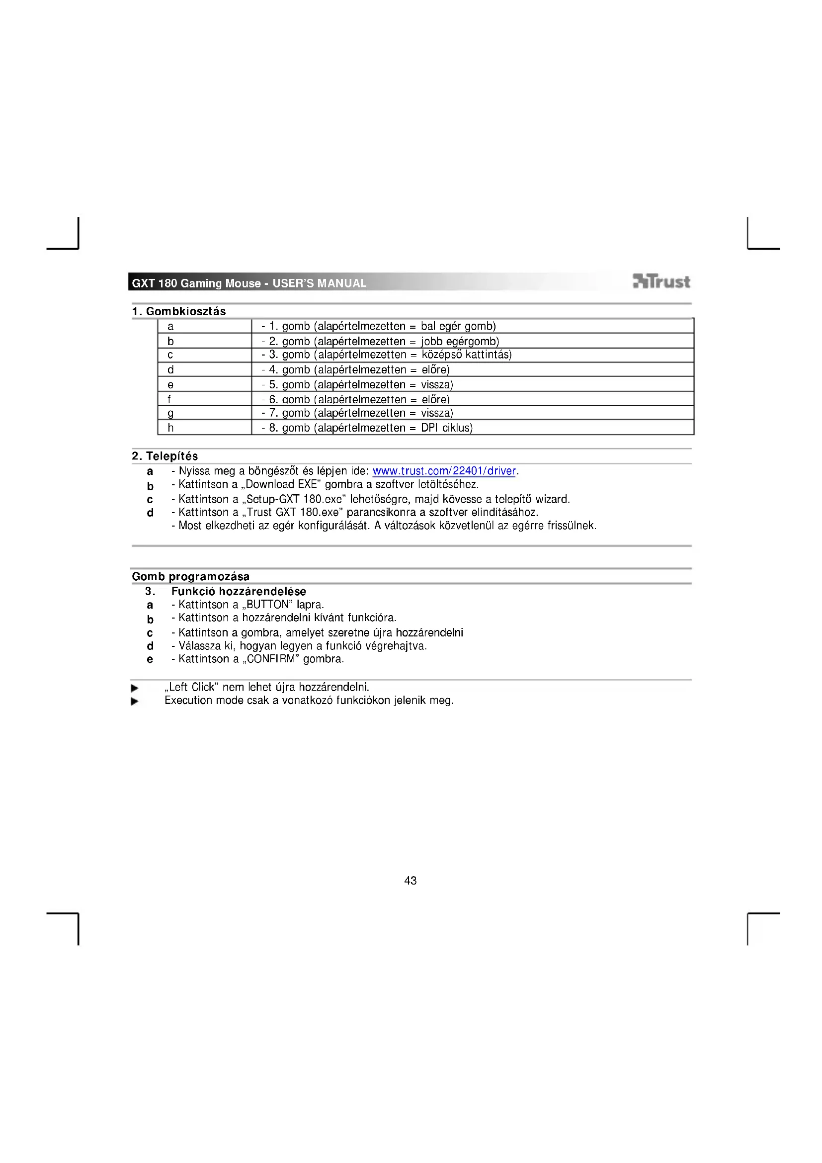 Kusan GXT 180 - Egér TRUST - Ingyenes használati útmutató