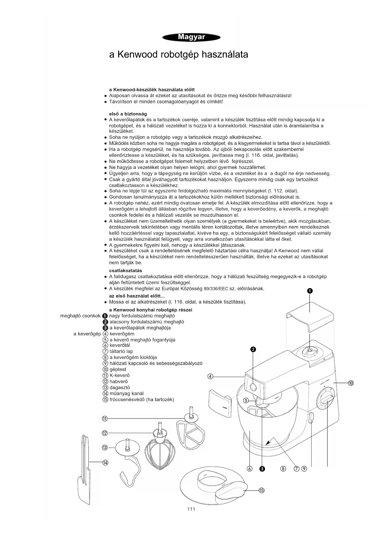A készüléket csak a rendeltetésének megfelelő háztartási célra használja! A Kenwood nem vállal felelősséget, ha a készüléket nem rendeltetésszerűen használták, illetve ha ezeket az utasításokat nem tartják be. csatlakoztatás