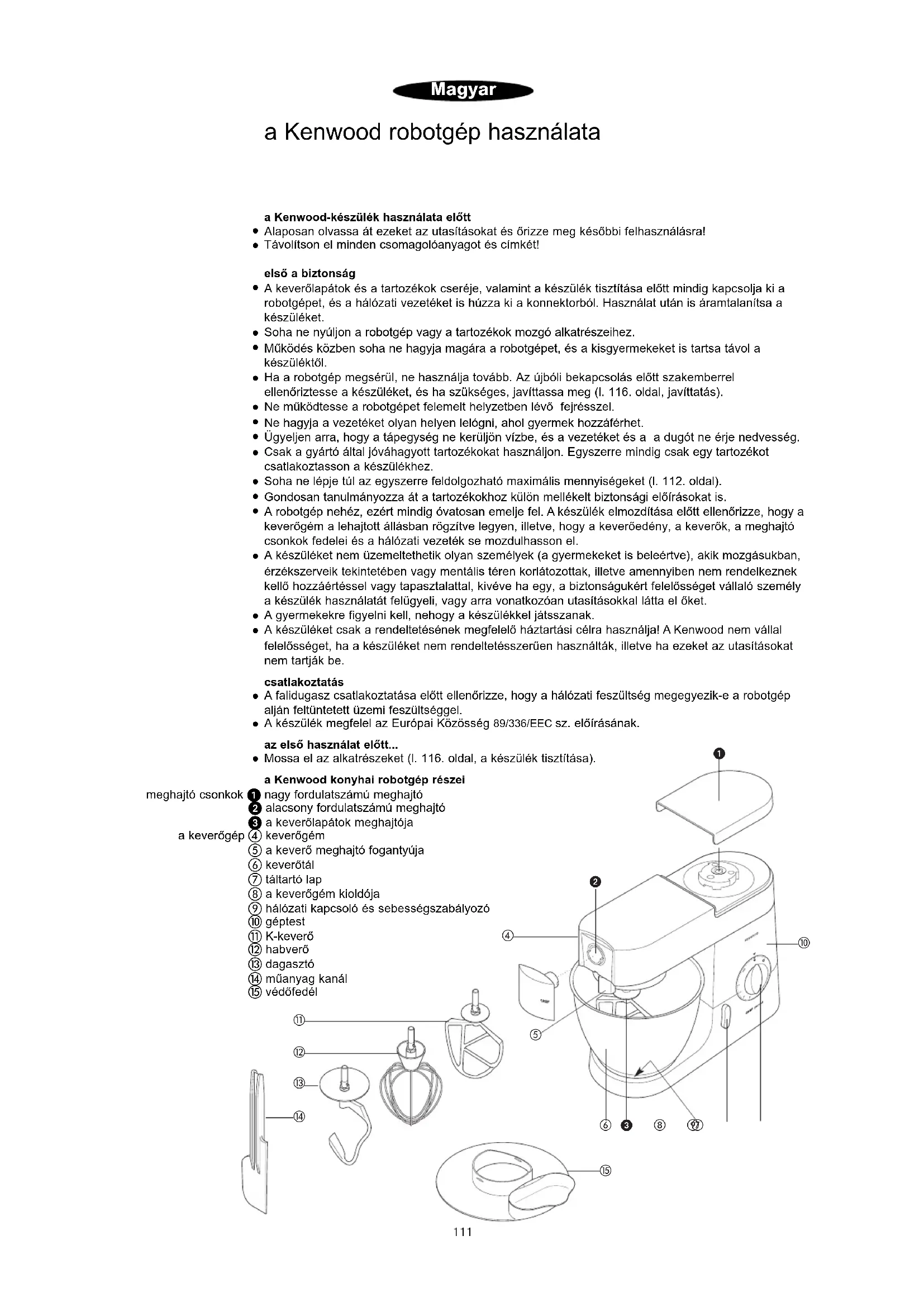 A készüléket csak a rendeltetésének megfelelő háztartási célra használja! A Kenwood nem vállal felelősséget, ha a készüléket nem rendeltetésszerűen használták, illetve ha ezeket az utasításokat nem tartják be. csatlakoztatás