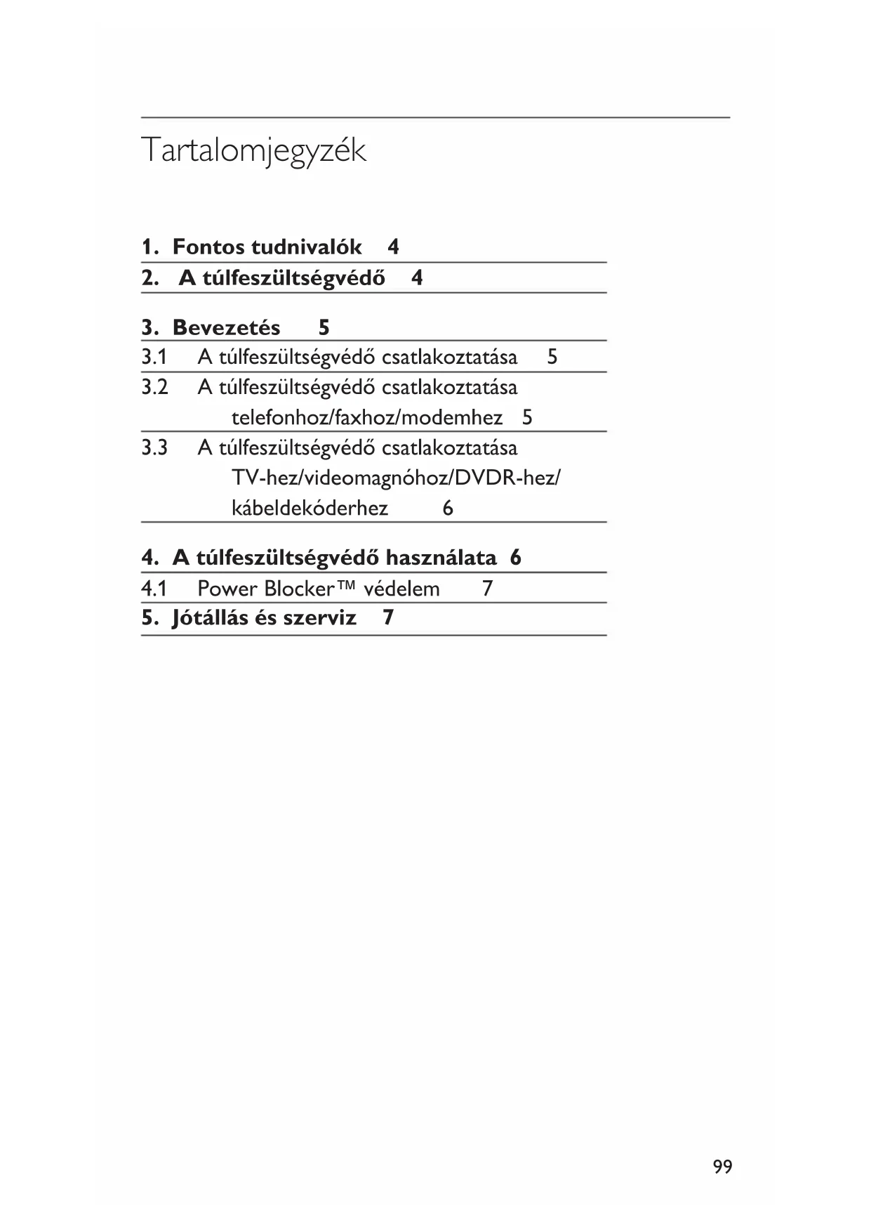4. A túlfeszültségvédő használata 6