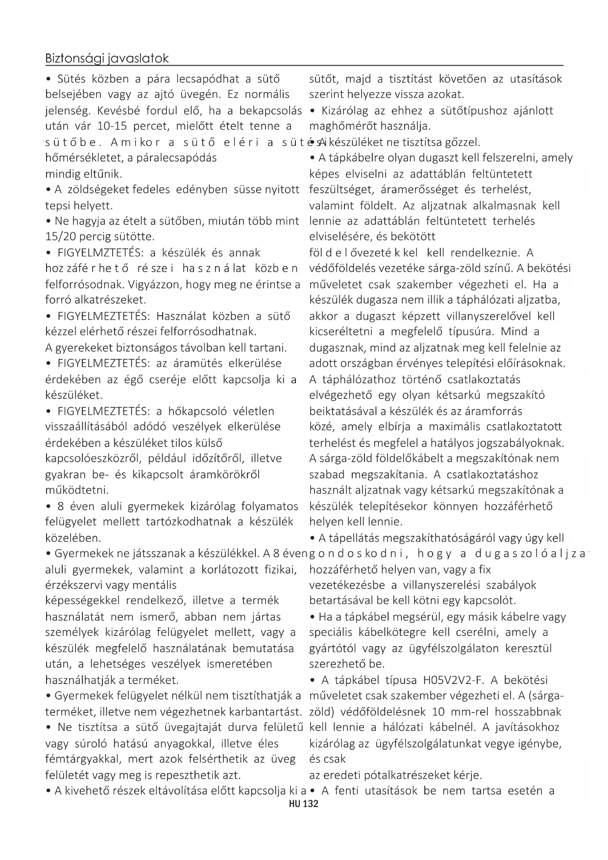 - A fenti utasítások be nem tartsa esetén a HU 132készülék használata veszélyessé válhat és a garancia érvényét veszítheti.