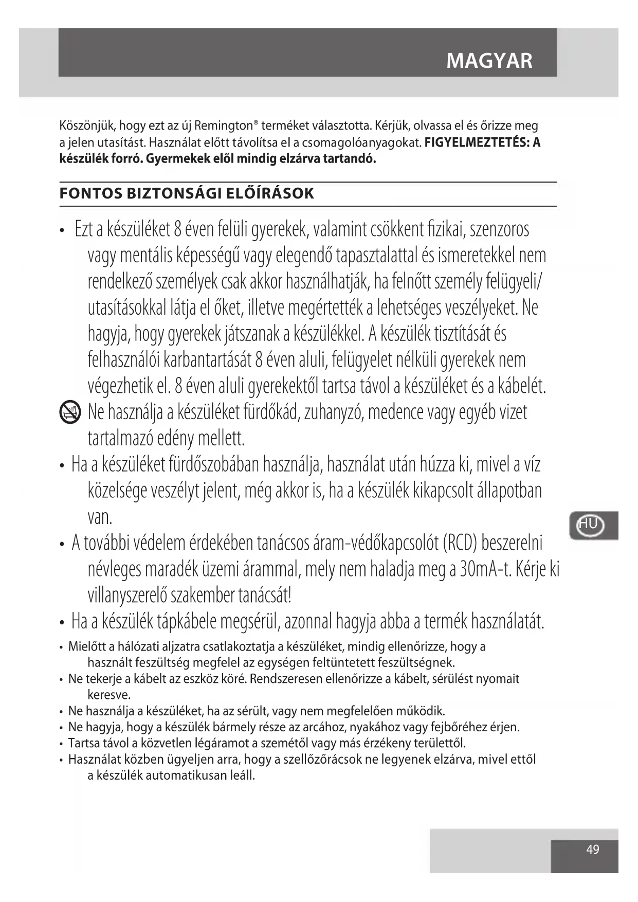 HASZNÁLATI ÚTMUTATÓ HYDRAluxe AC8901 REMINGTON