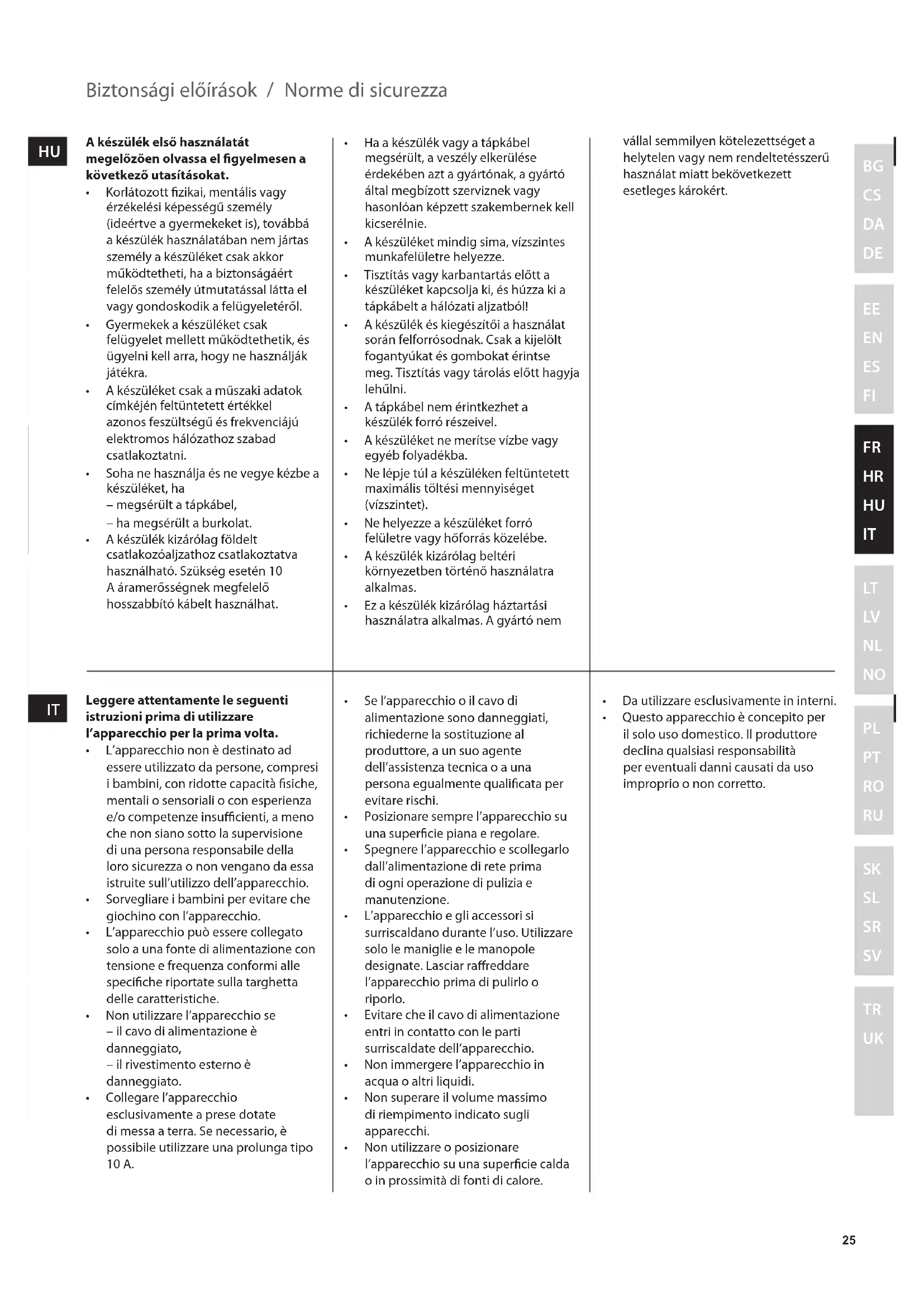 - Ezakészülékkizárólagháztartási használatra alkalmas. A gyártó nem vállal semmilyen kötelezettséget a helytelen vagy nem rendeltetésszerű használat miatt bekövetkezett esetleges károkért.