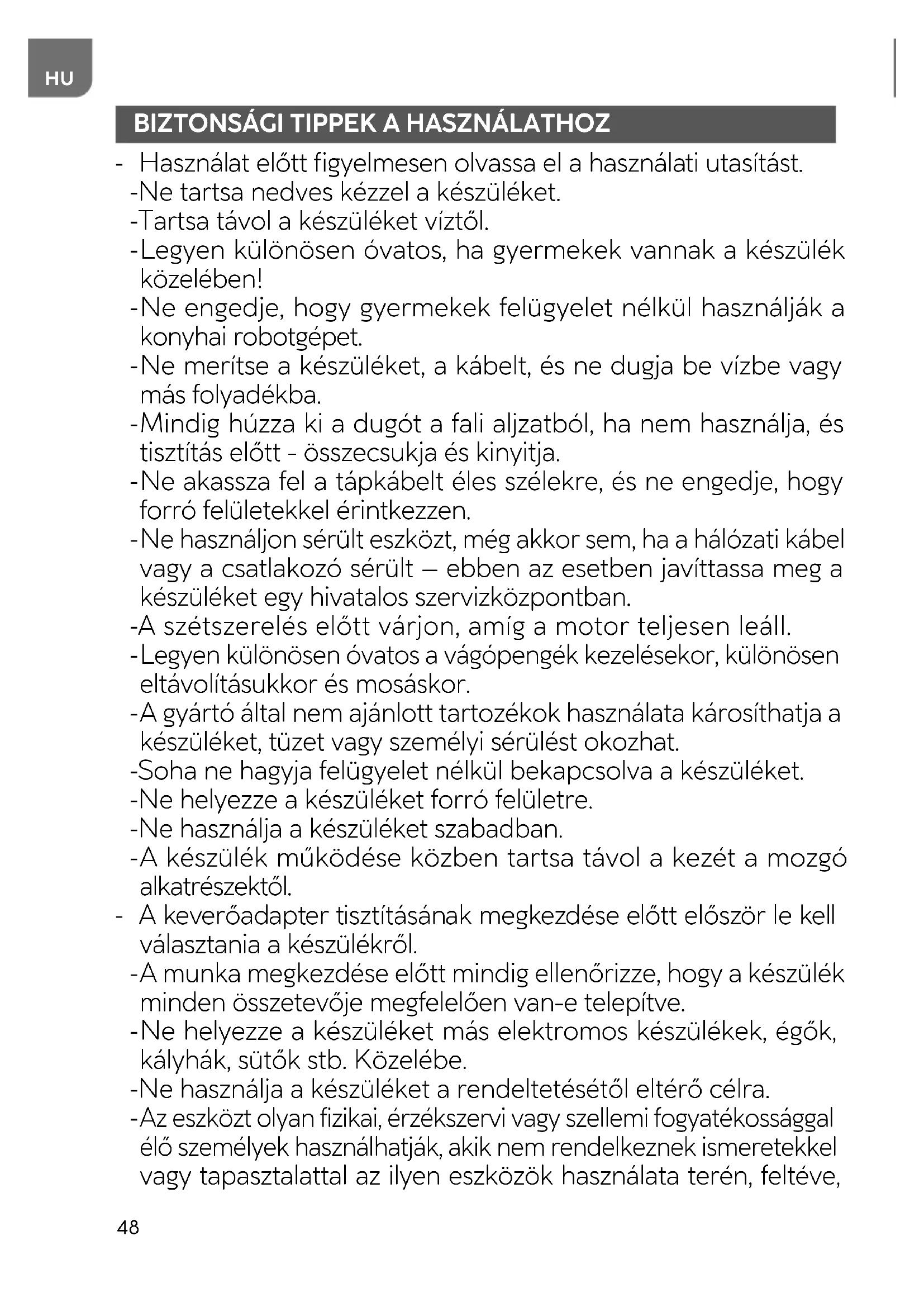A készülék működése közben tartsa távol a kezét a mozgó alkatrészektől. - A keverőadapter tisztításának megkezdése előtt először le kell választania a készülékről.