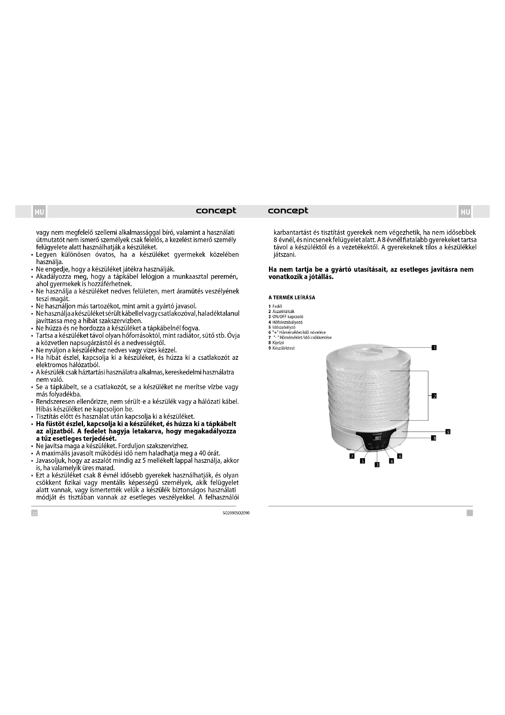 SO2090 - Élelmiszer szárító Concept - Ingyenes használati útmutató
