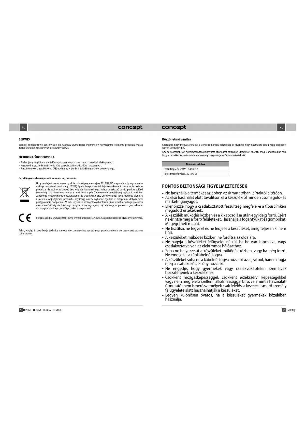 HASZNÁLATI ÚTMUTATÓ TE2062 Concept