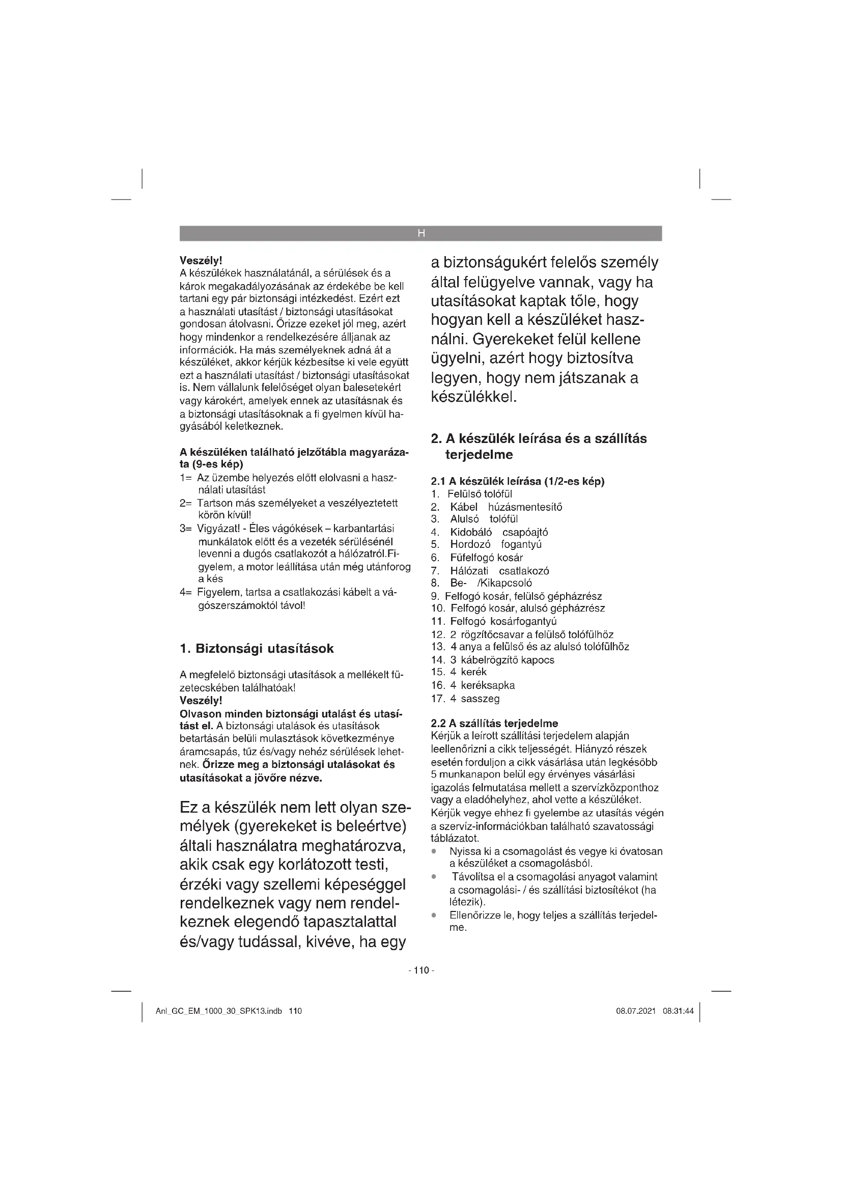 Ellenőrizze le, hogy teljes a szállítás terjedel- me. Anl_GC_EM_1000_30_SPK13.indb 110Anl_GC_EM_1000_30_SPK13.indb 110 08.07.2021 08:31:4408.07.2021 08:31:44H