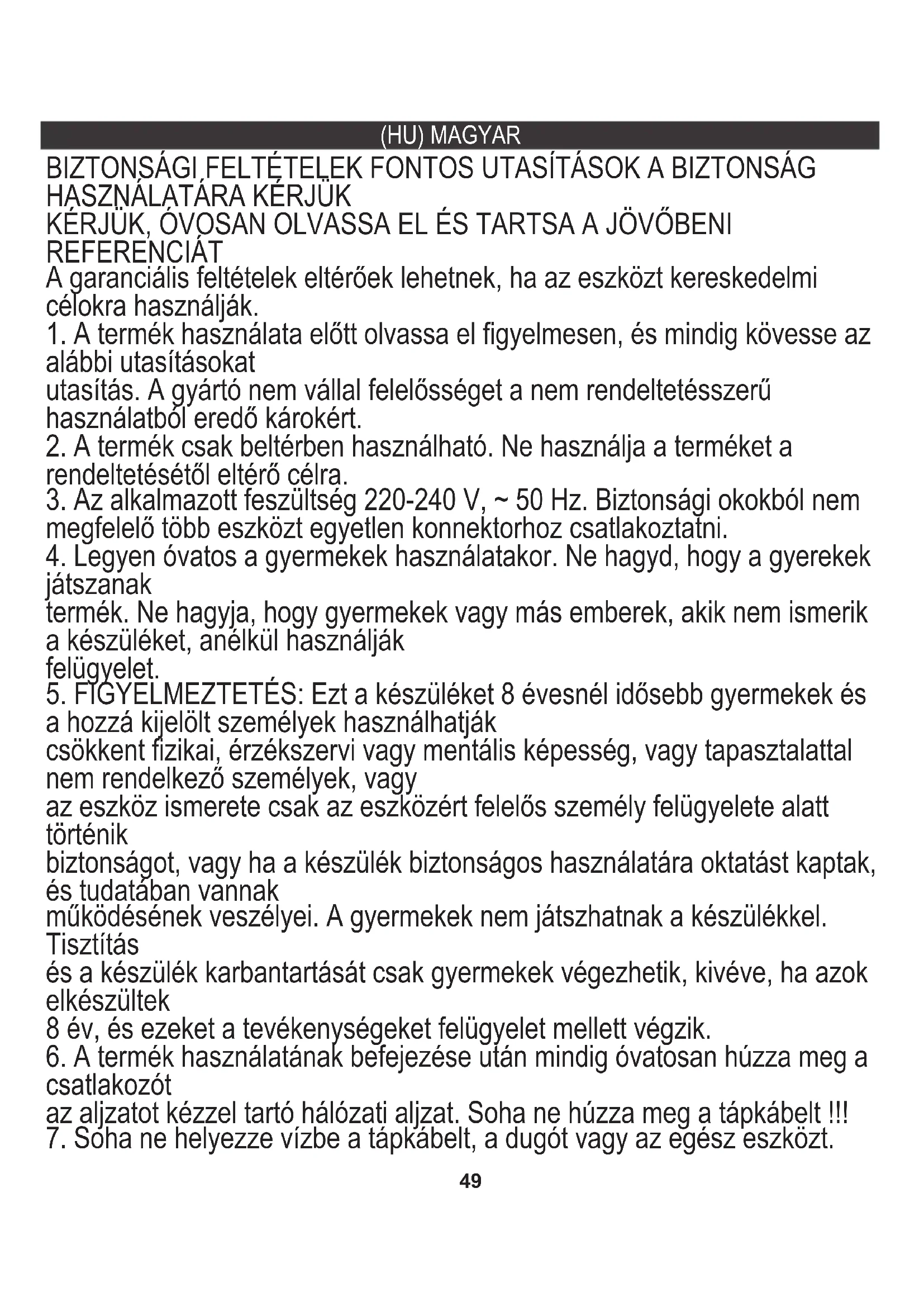19. A tisztítást és a felhasználói karbantartást gyermekek nem végezhetik.