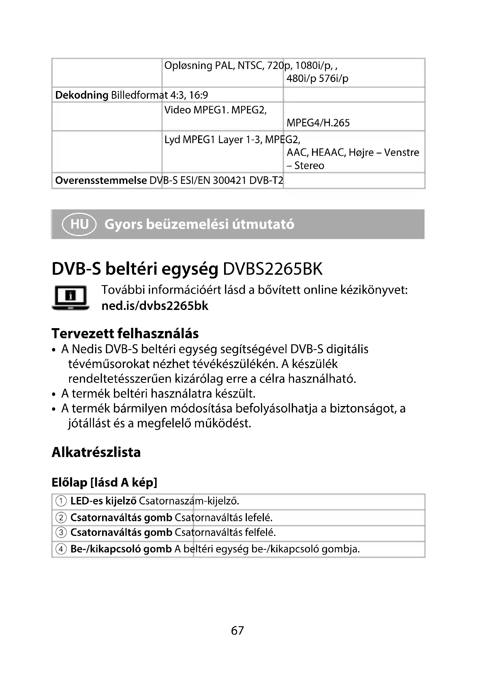 Gyors beüzemelési útmutató DVB-S beltéri egység DVBS2265BK További információért lásd a bővített online kézikönyvet: ned.is/dvbs2265bk Tervezett felhasználás