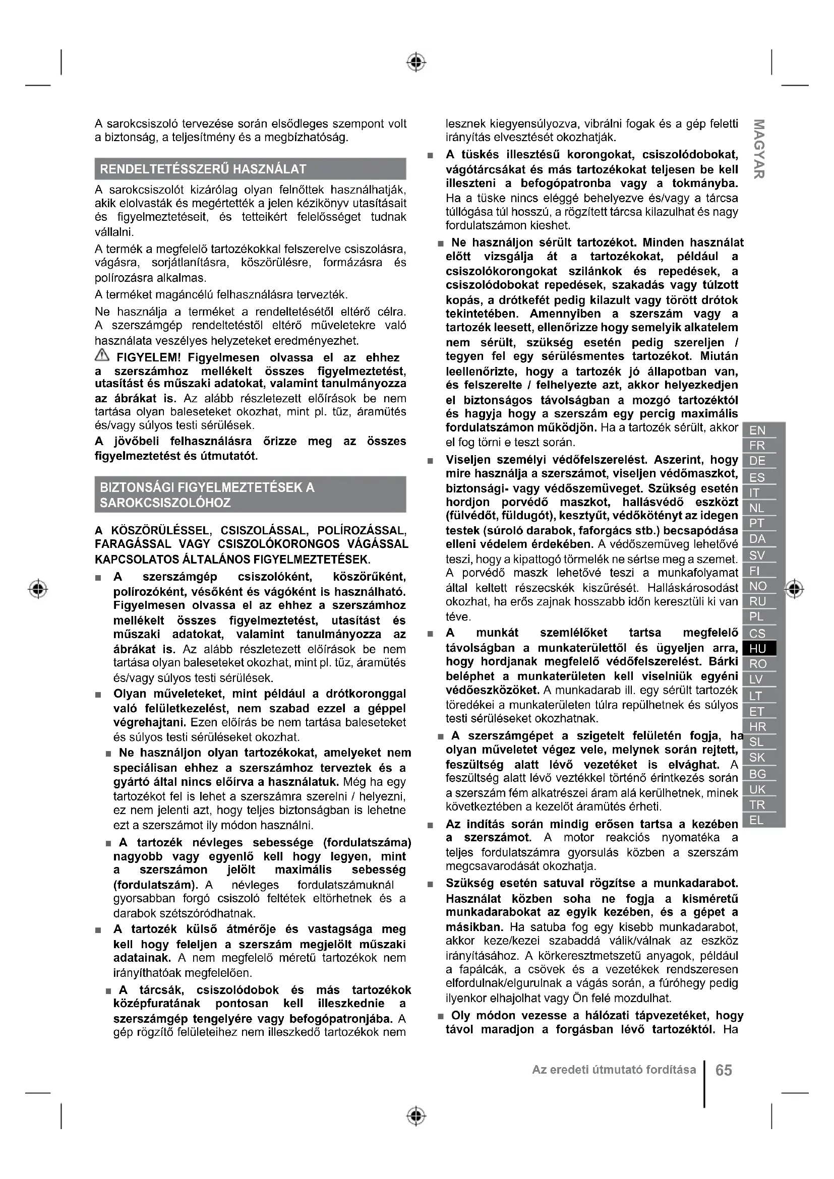Překlad originálních pokynůA sarokcsiszoló tervezése során elsődleges szempont volt a biztonság, a teljesítmény és a megbízhatóság.