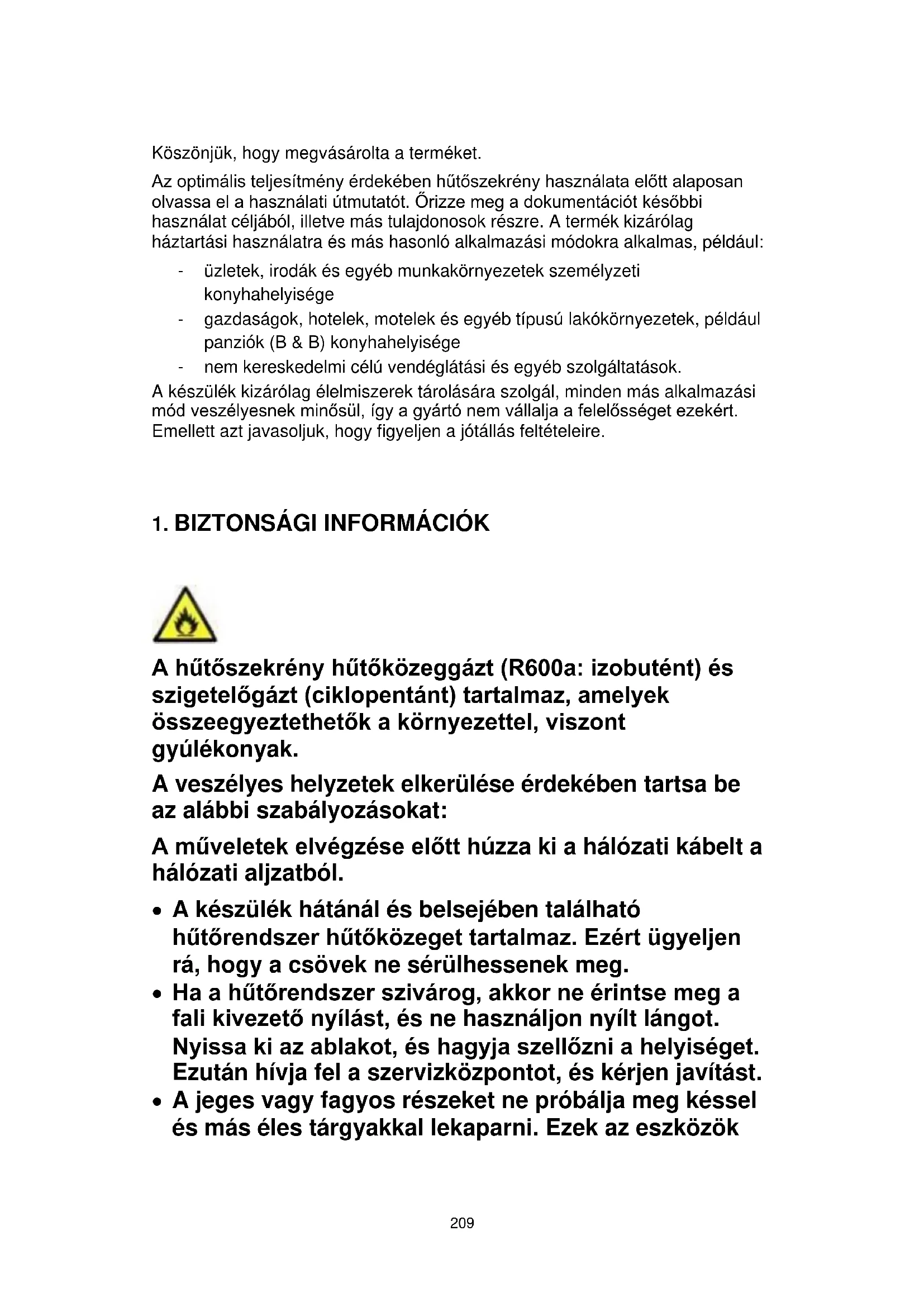 nem kereskedelmi célú vendéglátási és egyéb szolgáltatások. A készülék kizárólag élelmiszerek tárolására szolgál, minden más alkalmazási mód veszélyesnek minősül, így a gyártó nem vállalja a felelősséget ezekért. Emellett azt javasoljuk, hogy figyeljen a jótállás feltételeire.