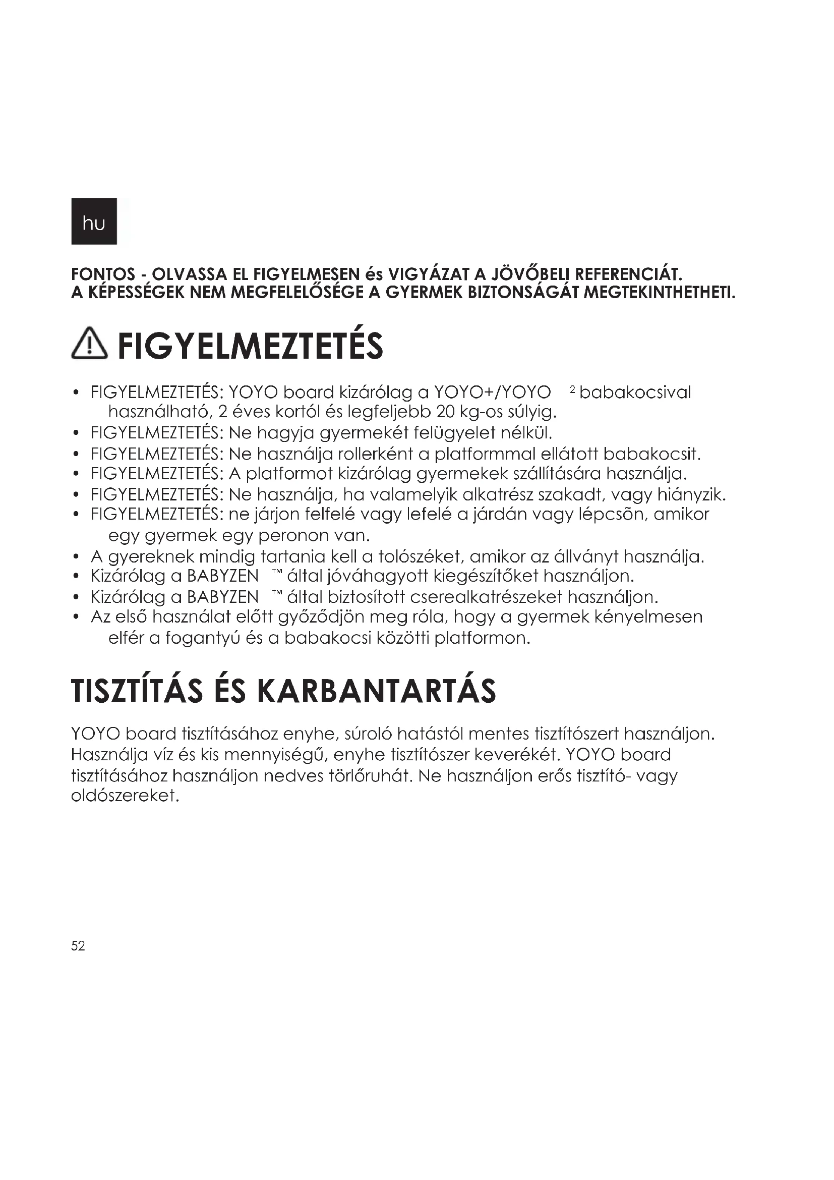 - FIGYELMEZTETÉS: A platformot kizárólag gyermekek szállítására használja.