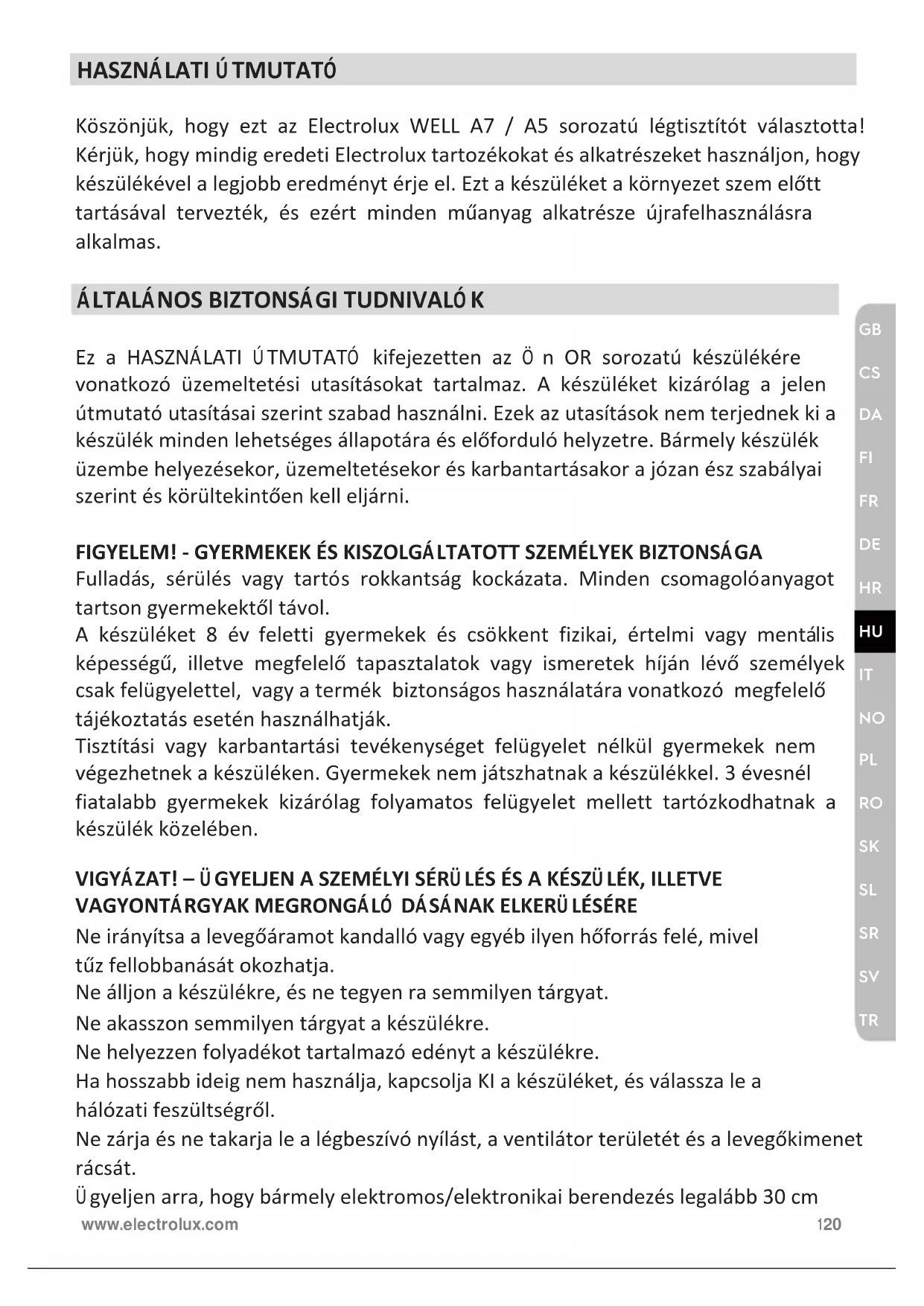 HASZNÁLATI ÚTMUTATÓ Well A7 WA71305GY ELECTROLUX