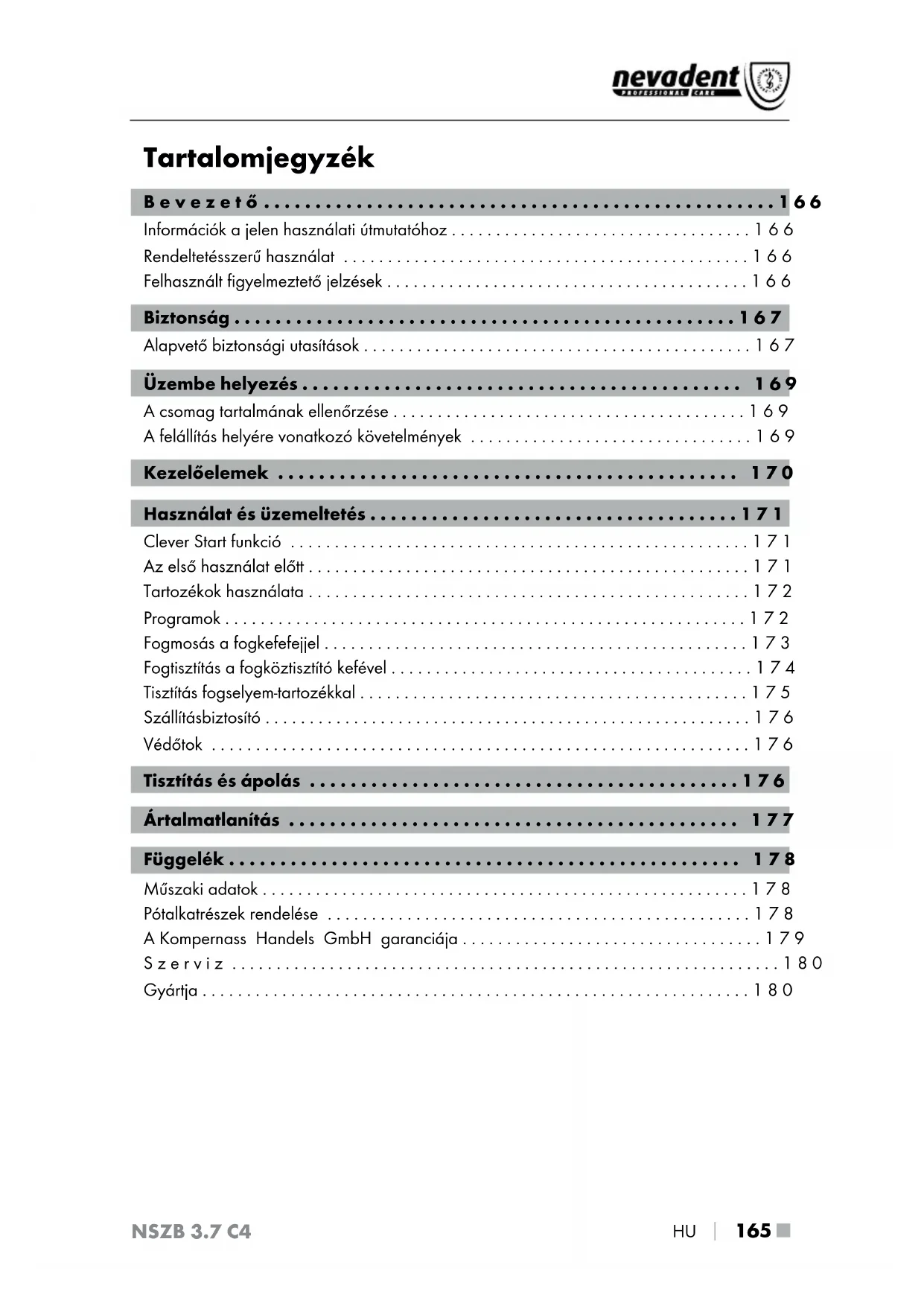 Találja meg az eszköz kézikönyvét ingyenesen NSZB 3.7 C4 NEVADENT PDF formátumban.