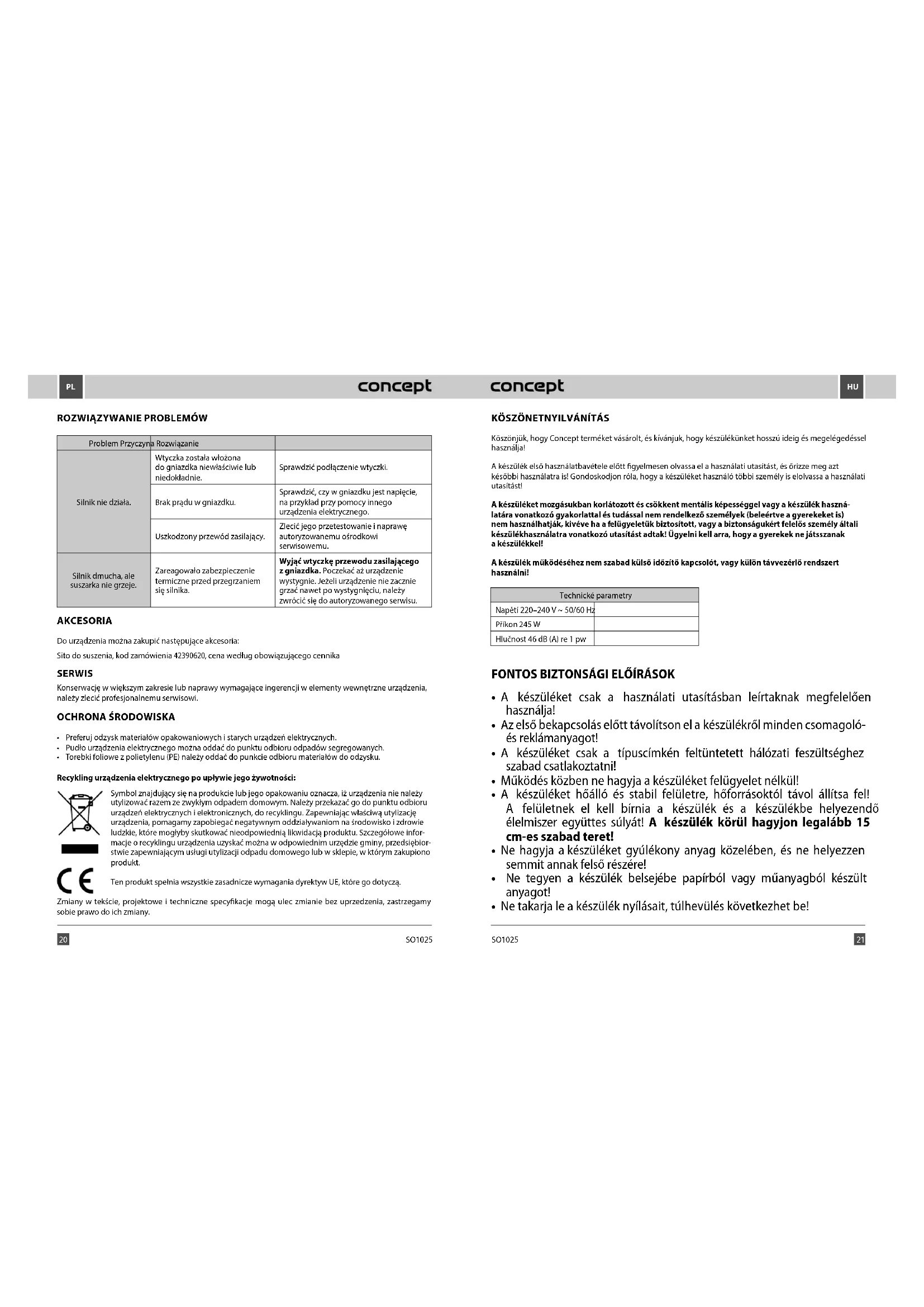 SO1025 - Élelmiszer szárító Concept - Ingyenes használati útmutató