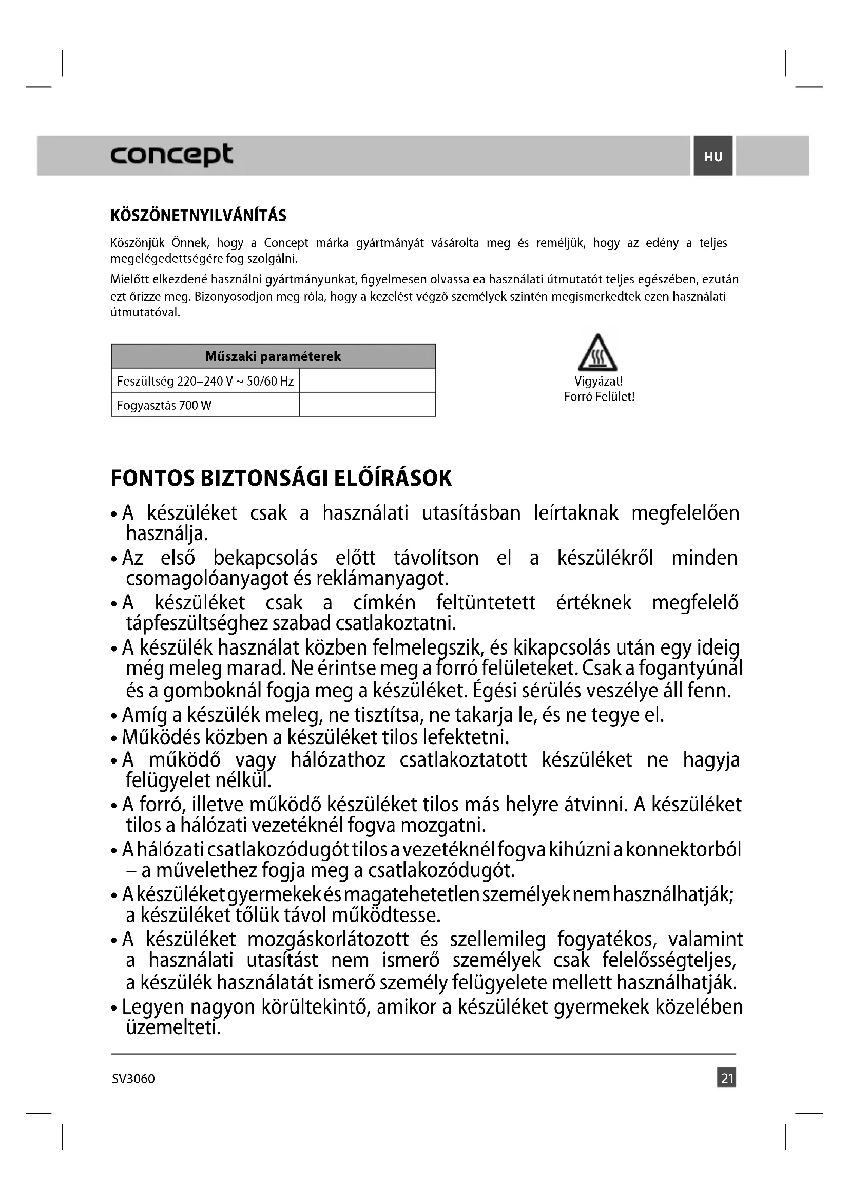 HASZNÁLATI ÚTMUTATÓ SV3060 Concept