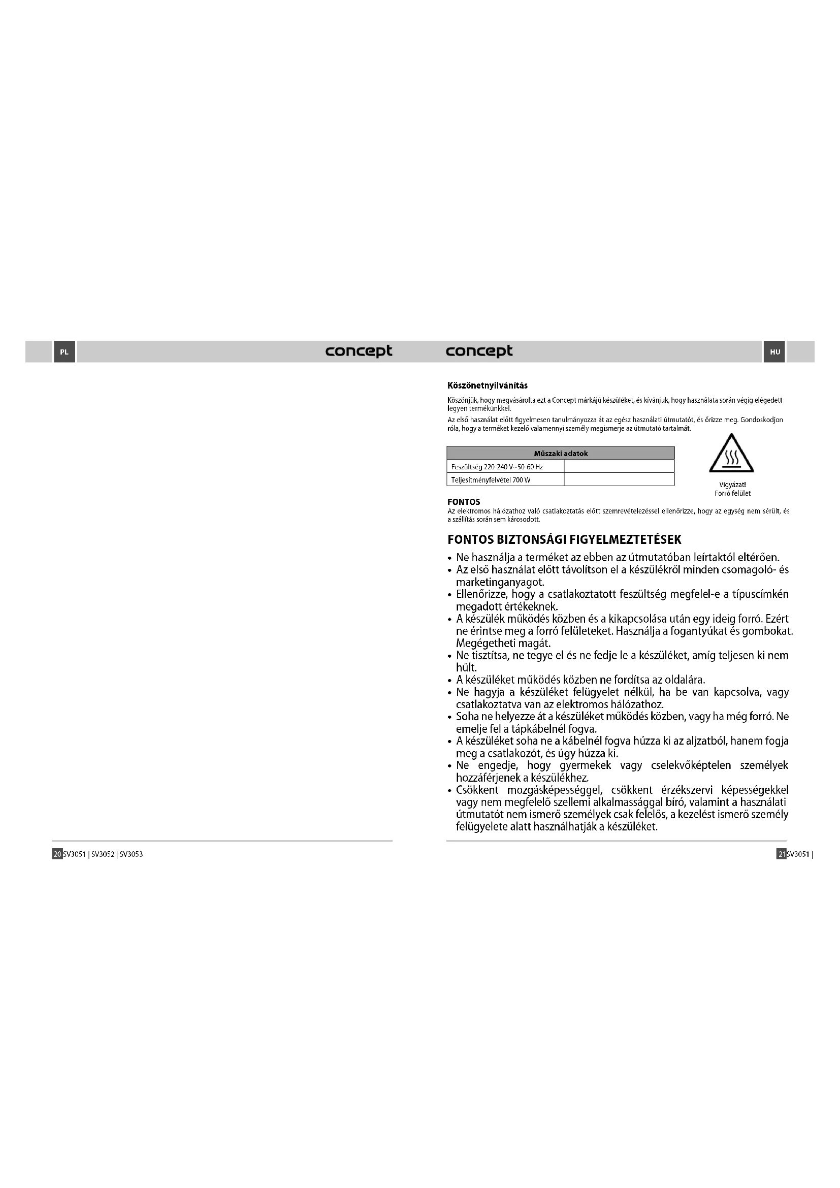 HASZNÁLATI ÚTMUTATÓ SV3053 Concept